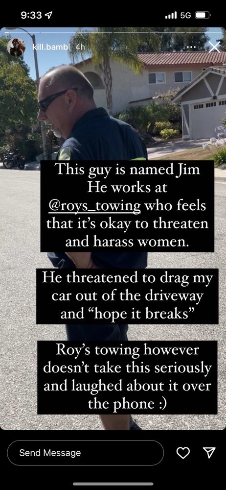 Roy's came out for a AAA call and were amazingly fast, knowledgeable, courteous, and overall awesome with a very disabled vehicle in a tight space. Thanks you guys for being awesome!!