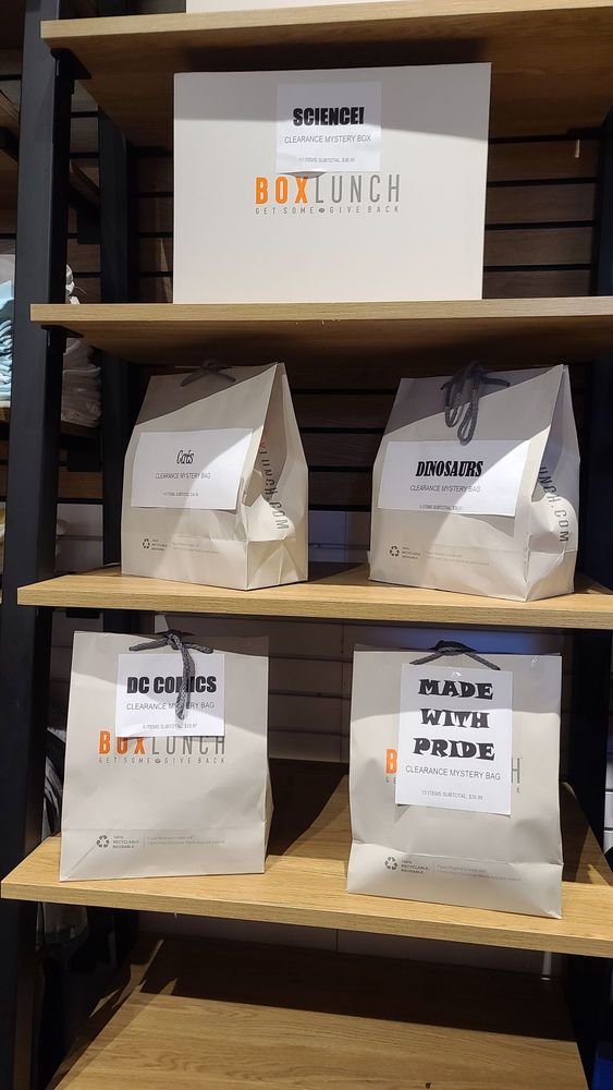 BoxLunch Torrance is a destination for pop culture gifts and merchandise, featuring an endless selection from Disney, Marvel, Harry Potter, anime, and more. The store offers a wide range of goods, collectibles, Funko Pop items, Squishmallows, clothing, and accessories, making it a place to find items for yourself or cool presents. The workers are consistently noted as sweet, friendly, and happy, providing excellent customer service. Staff frequently go above and beyond, helping to find items, offering informative advice on policies, and giving helpful gift-giving suggestions. Many reviewers highlight the great shopping experience and the great deals often available, especially through the store's app. It is described as a great store with a joyful atmosphere for superfans and shoppers.