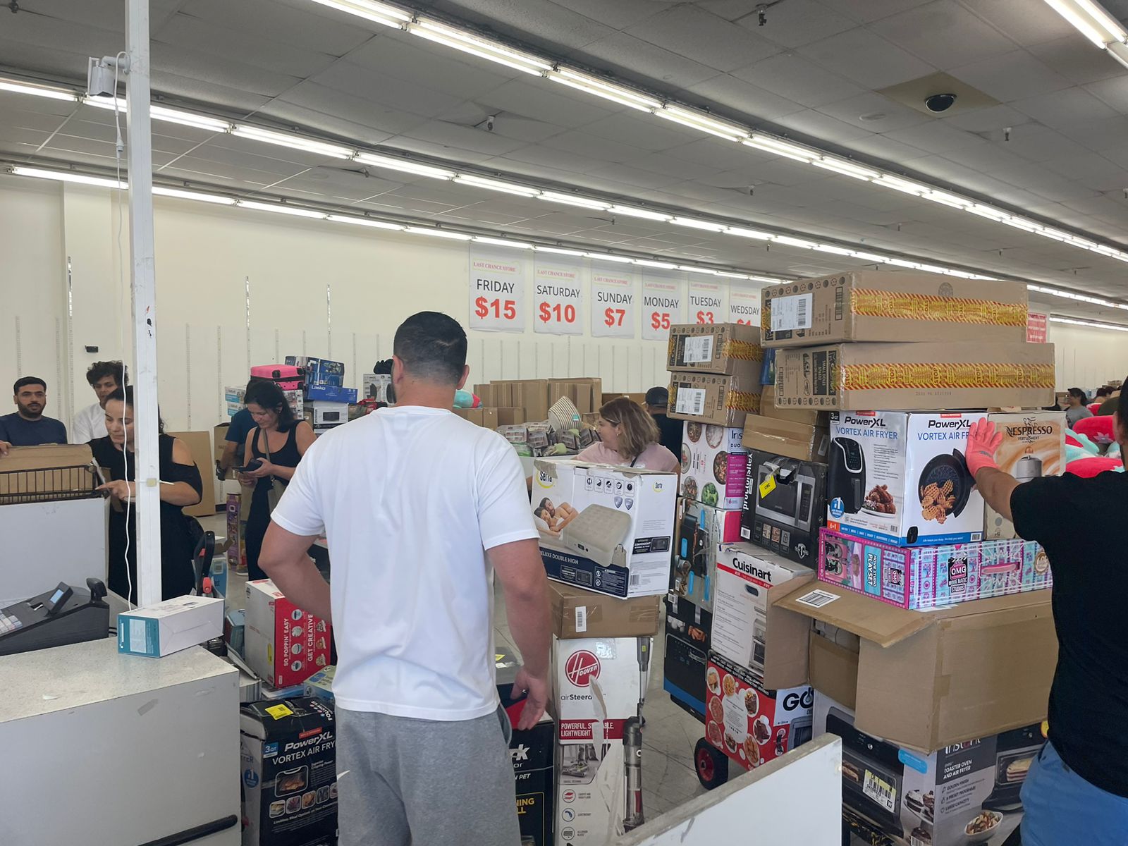 Oh my goodness!!! Tables and tables of lady chance items, Amazon returns, and the most fabulous deals! Prices change every day, Fridays are $12 for anything on the tables and they go down each day after that. I bought my cat a $200 amazon cat tree for only $12!!! Happy shopping!!!!!