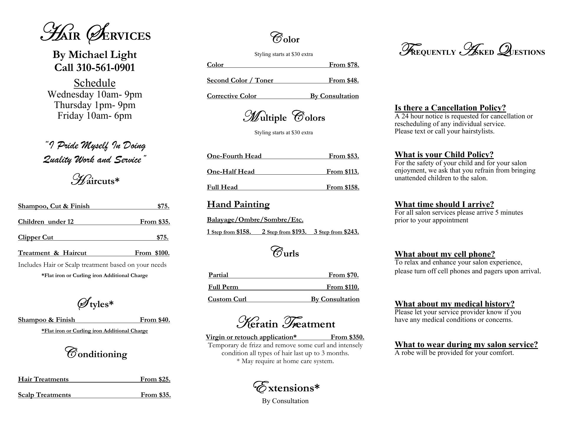 Michael Light has been doing my hair for nearly 20 years and I always get tons of compliments. I get my hair cut, colored and styled and it’s always a big win.