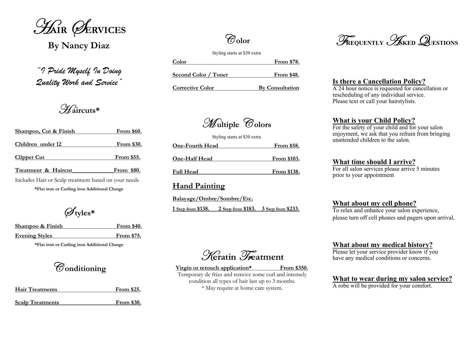 Nancy has been doing my hair for longer than I can remember (maybe 10+ years now!) She is professional, amazing at cutting my long fine hair, and so so nice. If you are looking for an amazing cut go to Nancy!Services: Haircut