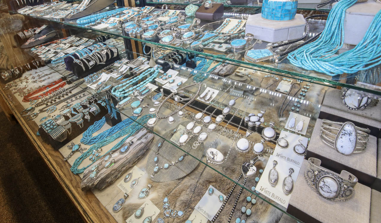 The White Buffalo offers mountain and southwest style living products. We strive to buy and sell products made in the USA. There is an extensive inventory of gold and silver jewelry, including Gold Quartz, traditional southwestern and contemporary jewelry from the Navajo, Zuni, and Santa Domingo tribes. We also carry jewlery from artists like Federico Jimenez, and Uno de 50. The White Buffalo has a large inventory of Native American hand-made collectible pieces, such as Navajo rugs, pueblo storytellers and pottery. We also carry art and unique gifts, from fish shaped pots that gurgle to beautiful squash blossom necklaces. We hope you enjoy shopping with us as much as we enjoy finding the perfect items to offer you!