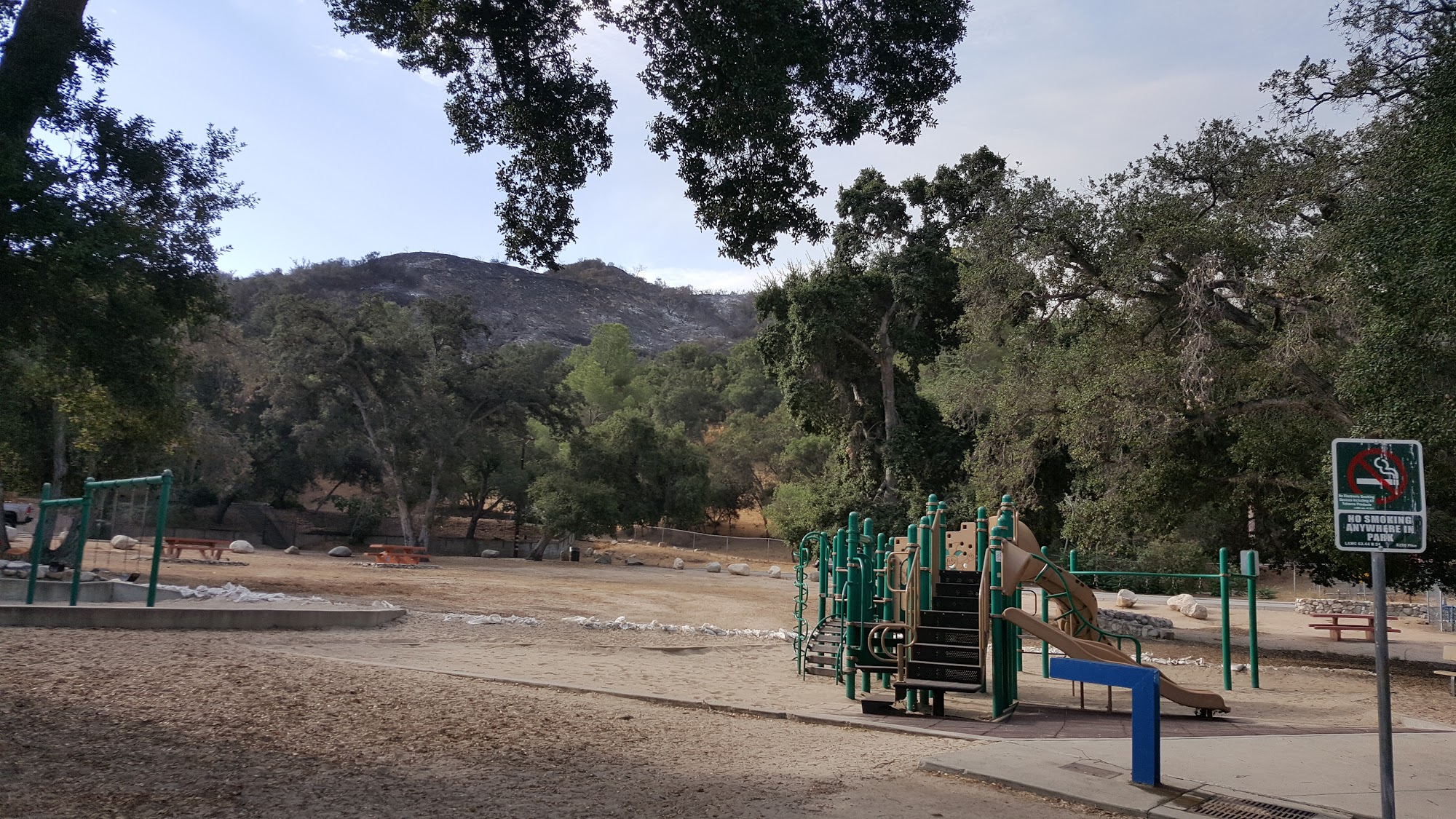Cute quiet park. Great place to sit and listen to the surrounding nature. Wish there was night lighting or maybe a larger shade structure. But a great park nonetheless.