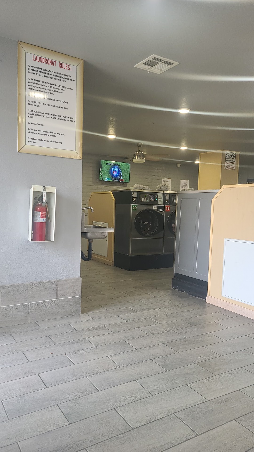 The place is amazing and lot's of different size washing machines, and it's really clean and not ran down like other laundromats around town.
