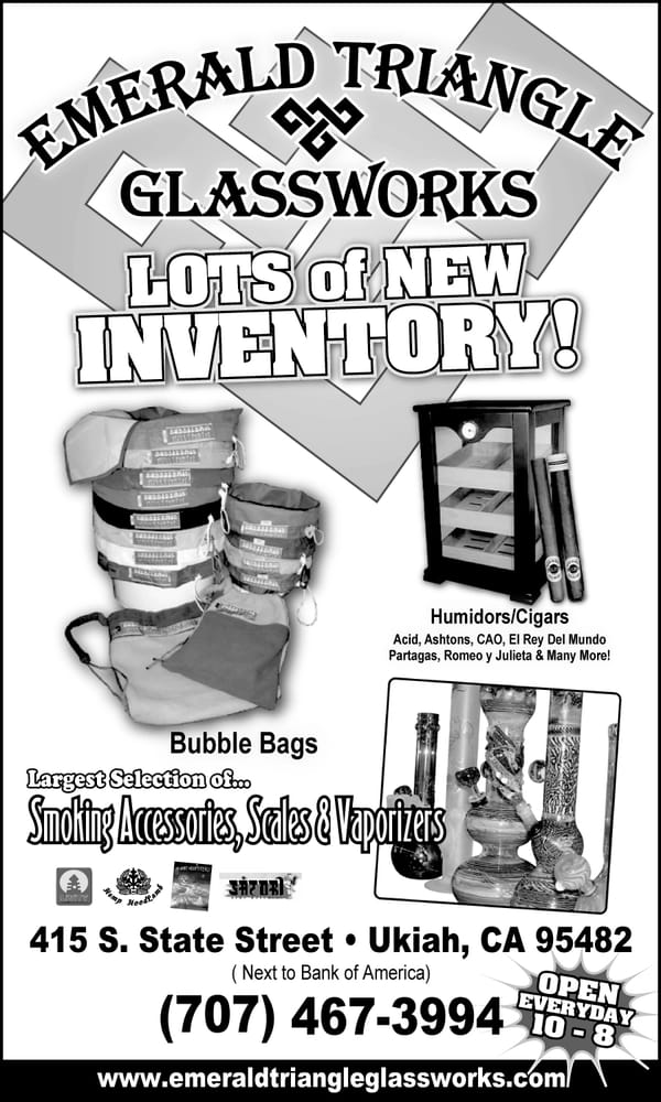 Emerald Triangle Glassworks is the number one smoke shop in Ukiah, offering great products, great deals, and great customer service. The owner and staff are attentive, helpful, knowledgeable, very friendly, honest, and helpful. They have an impressive selection of everything you need, including beautiful pieces of pure art glasswork made in the Pacific Northwest, a wide range of products, supplements, healthy tinctures, trinkets, and tools for healing and calming. They keep up with cannabis culture trends and offer competitive pricing. It is a shop with great vibes where customers feel relaxed to take their time.