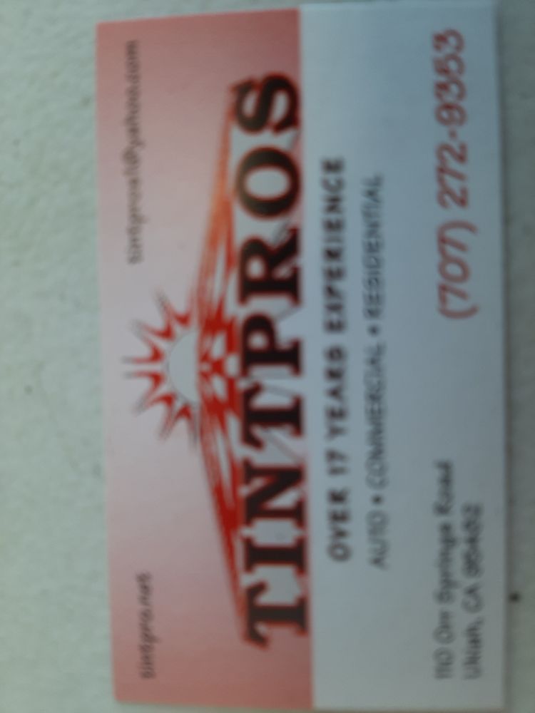 Tint Pros is the go-to business for window tinting in Mendocino, Lake, and Humboldt Counties. With extensive experience since 1995 and over 40,000 cars tinted, they have a perfect 5.0 rating. They are the definitive go-to guy for tinting autos, commercial vehicles, and homes. The service is reliable, respectful, and courteous, treating every vehicle as expensive and special. They use quality materials and provide quality work that is definitely worth more than they charge, offering the best deal in town. The results are perfect, with work that stands the test of time. They offer privacy window films, daylight redirecting films, and provide excellent heat block and metallic reflection tints. They stand by their work and will address any problems, though customers report never having any issues. The process is made super easy, with work completed in a timely manner. Customers have been loyal for over 20 years, returning repeatedly and confidently sending friends and family. Tint Pros is definitely worth every cent.