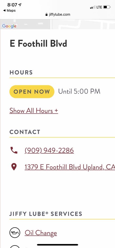 Jiffy Lube in Upland, CA, is a trusted location for preventive automotive maintenance, including oil changes, brake services, battery replacements, tire services, and fleet services. Customers appreciate the friendly and helpful staff who provide quick, knowledgeable, and attentive service. Many reviews highlight the efficient process, with some customers being served faster than expected. The technicians are noted for their care and professionalism, ensuring vehicles are inspected thoroughly, such as checking filters and rotating tires. The location offers industry-leading car maintenance without the need for an appointment, making it convenient for customers. Overall, Jiffy Lube Upland is highly recommended for its great service, caring staff, and commitment to keeping vehicles in top condition. Itβs a top-notch place for oil changes and automotive care in the area.