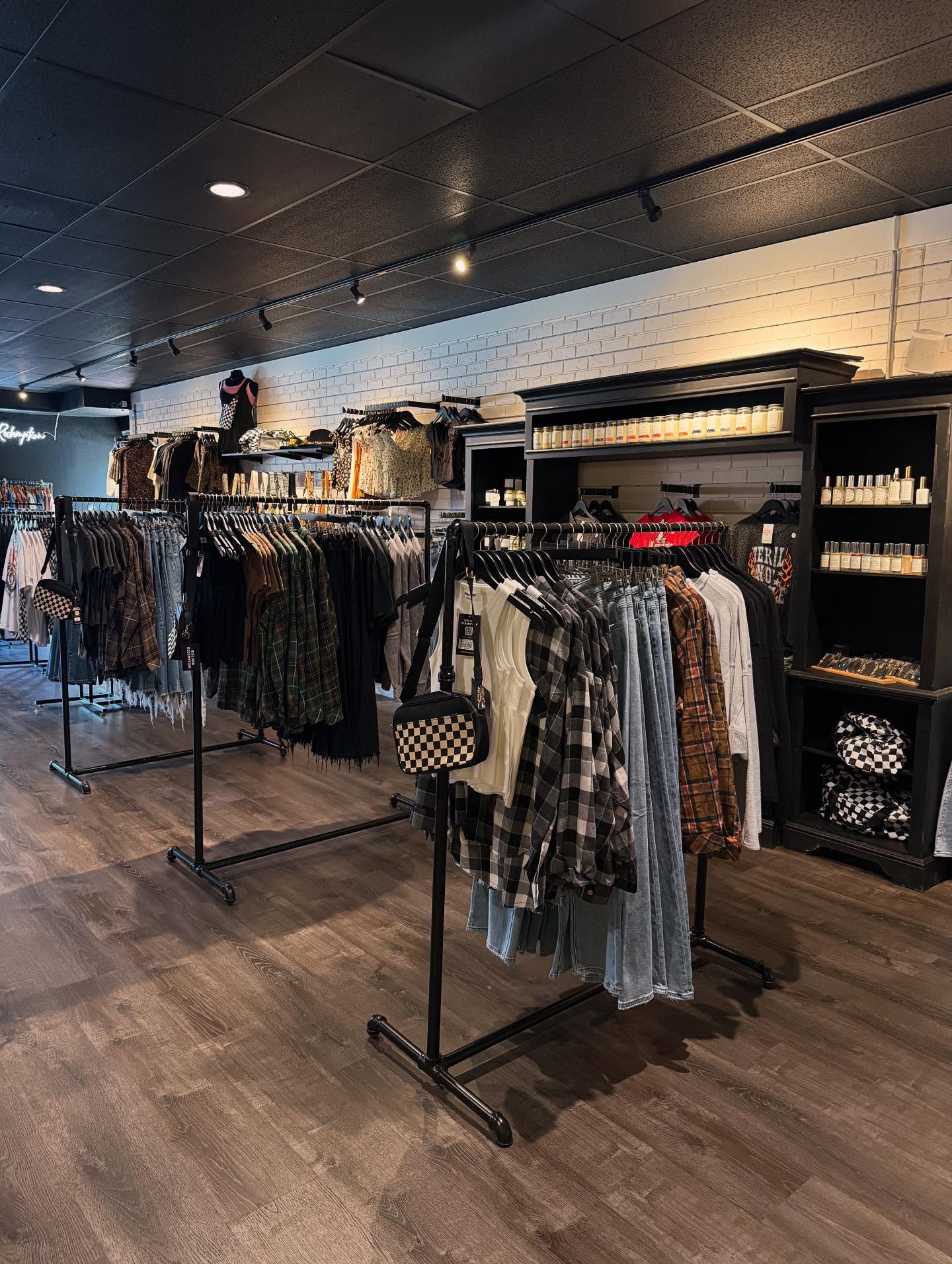 Rise and Redemption is a small, family-operated business that offers affordable, trend-based apparel, accessories, gifts, and even toys for the whole family. Located in downtown Vacaville, the store has become a favorite for many shoppers who appreciate its unique and stylish selection. The business has a strong focus on supporting other small businesses and charities, reflecting its mission to give back to the community. The store features a wide range of sizes and carefully curated products that appeal to both adults and teens, including cute and trendy clothes, accessories, and gifts. The interior design is modern, with black walls, artwork, and stylish displays of hats, handbags, and scarves. Customers often praise the helpful and friendly staff, noting their willingness to assist and provide a welcoming atmosphere. The store's product range includes graphic tees, sweaters, outerwear, denim, and accessories from independent labels such as Dadbod Apparel, Sullen Clothing, and American Bonfire Company, emphasizing a fashionable, hip style. Despite some reviews mentioning no-return policies, many customers find the prices reasonable and the quality good. Rise and Redemption is appreciated not only for its trendy offerings but also for its support of local businesses, charities, and the community. Overall, it is a vibrant and supportive shopping destination that combines style, community spirit, and affordability.