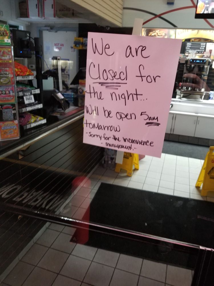 So there was a sign on the door that stated be back in 5.... we just dropped our car off next door. We got a full oil change and watched numerous other people leave and not be able to get gas. Someone was clearly not back within the 5 minutes and cost the company lots of business!