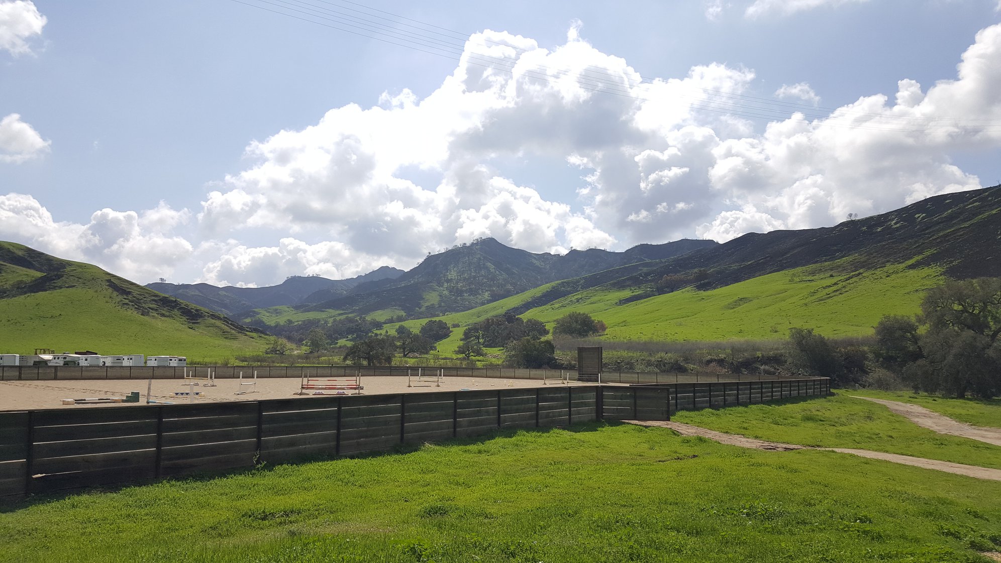 Canada Larga Stables is a gorgeous, secluded facility on 3500 acres. We have two covered, lighted arenas, a dressage court, an enormous jumping arena, a large and small round pen and a trail course arena. We also have miles of private trails and a mini cross-country course. We have a variety of trainers to meet your needs. Our resident trainers include Patrice Vernand (ranch riding & western disciplines, Gail Hoff-Carmona (dressage trainer and judge, Suzanne Galsterer (dressage) and Kristi Troyna of MCRC Equestrian (POny Club, English/Western, kids program, beginners through advanced, lesson horses).