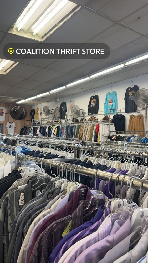 Coalition Thrift Store offers a diverse selection of thrift clothing, antiques, and miscellaneous items, making it a popular shopping destination. The store features great deals on clothing, with some items priced very low, such as shirts for under $5 and plates perfect for crafts and fundraisers. The merchandise tends to move quickly, ensuring fresh inventory and reducing stale items. Customers appreciate the variety and the opportunity to find unique pieces, especially for DIY projects or fundraising. However, some shoppers find the pricing inconsistent, with certain items, like vintage jeans or jackets, marked at very high prices that seem unreasonable compared to other thrift stores. There have been concerns about pricing accuracy, especially on clothing with damage or holes, and some items are priced higher than their market value, even matching or exceeding retail or online prices. Overall, Coalition Thrift Store is loved for its selection and deals but may require more careful pricing to meet all budget expectations.
