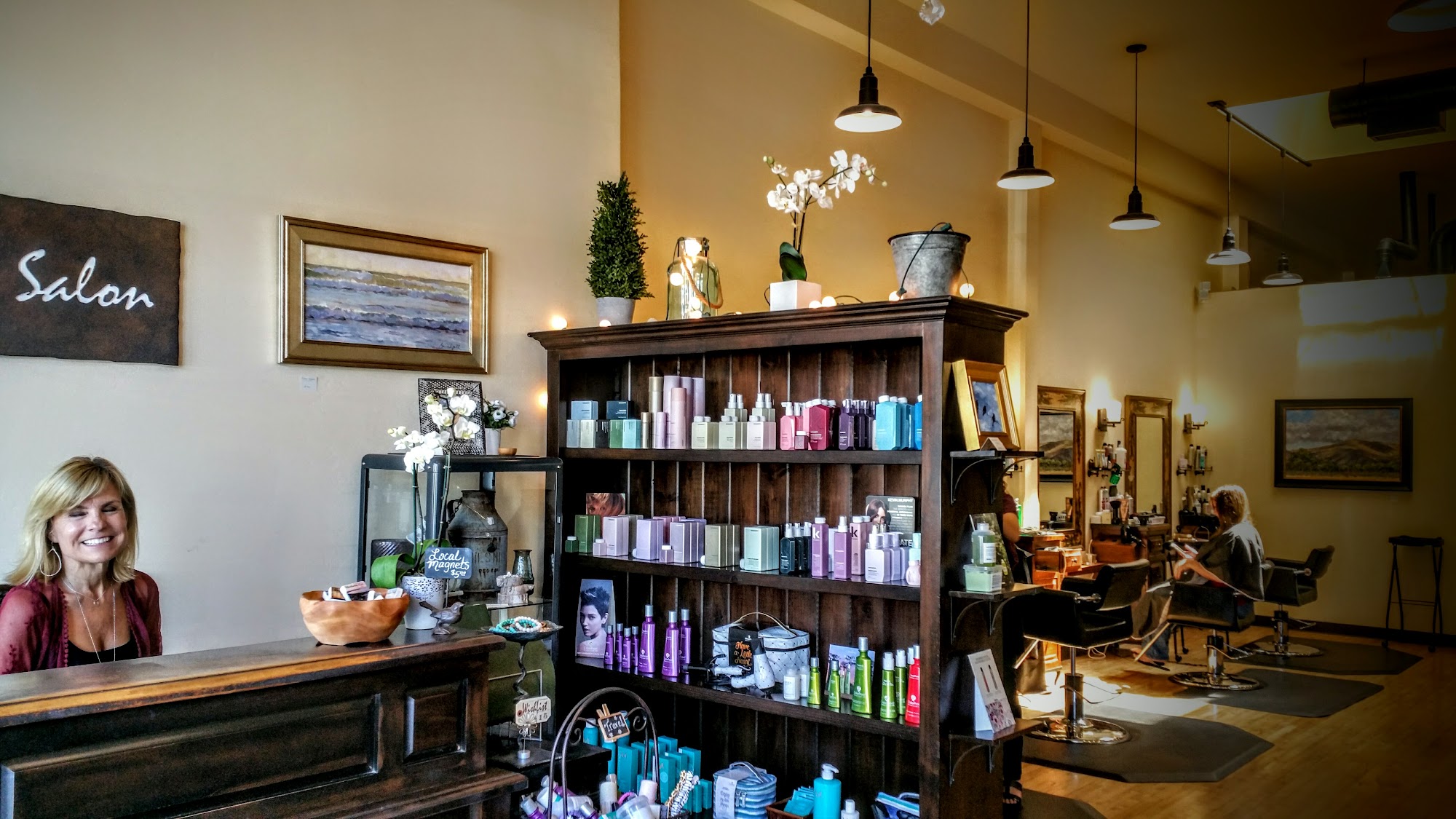 Upscale beautiful salon. Top notch front desk reception. Clean and boutique is an adorable touch.