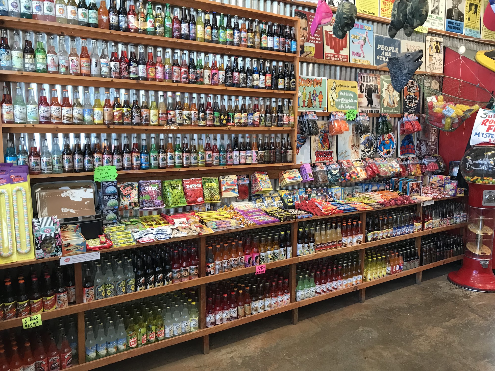 Very cute store! Fun decor, nice employees. Lots of candy and different types of soda pop to buy.