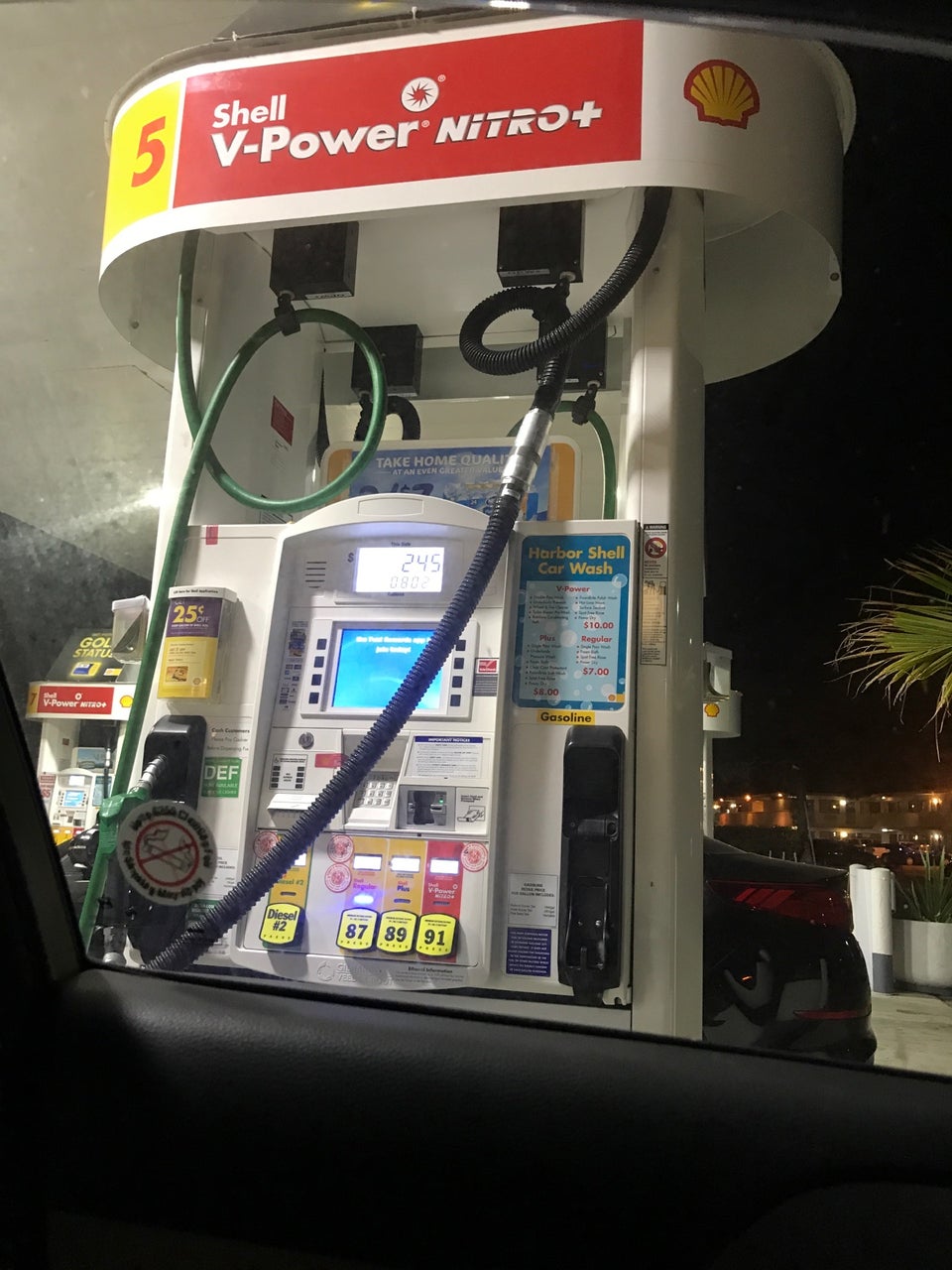 Great gas prices, my Impala likes the nitro, keeps it running well. Keep up the great work, Shell on Harbor. Thanks