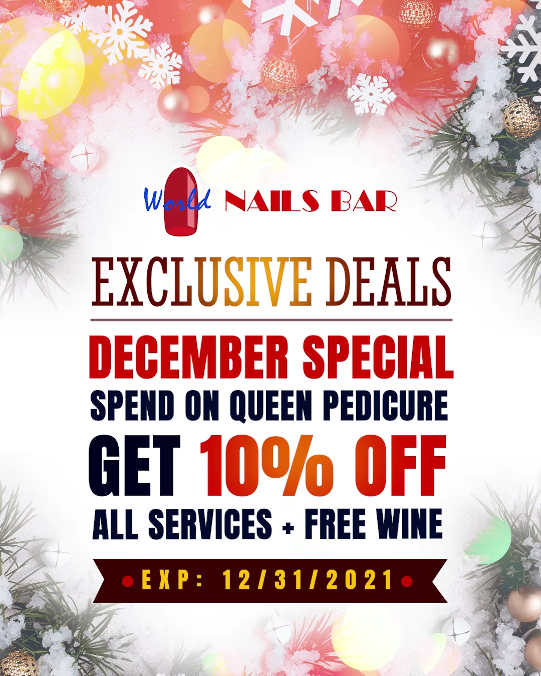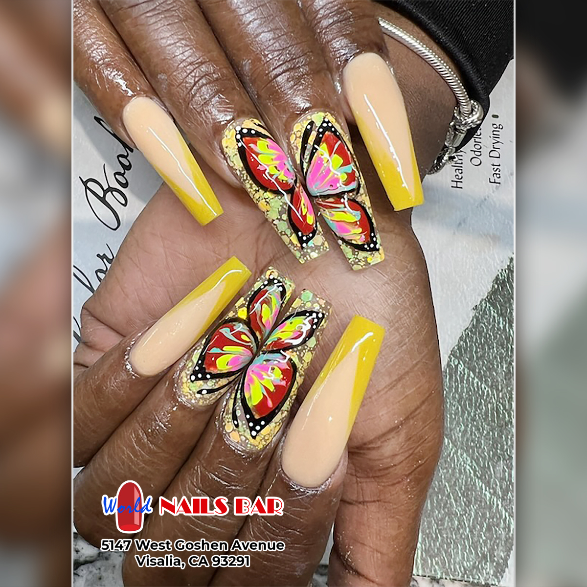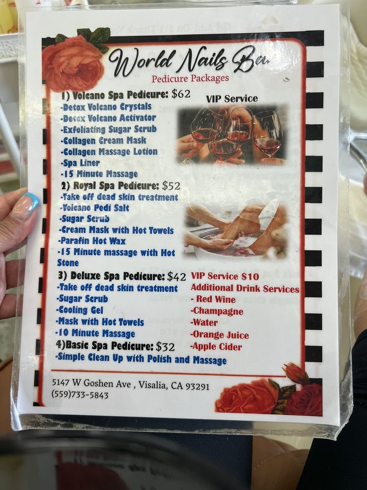 Have a relaxing time and be more beautiful after enjoying high-end services at one of the best nail salons in the industry: World Nail Bar! Located conveniently in Visalia, CA 93291, our nail salon is proud to deliver the highest quality for each of our services. We take pride in providing customers with a variety of services and the best-qualified products to bring you healthy, beautiful nails. Our talented and creative staff with immense experience will pamper customers from head to toe, many services are always available for you to choose.