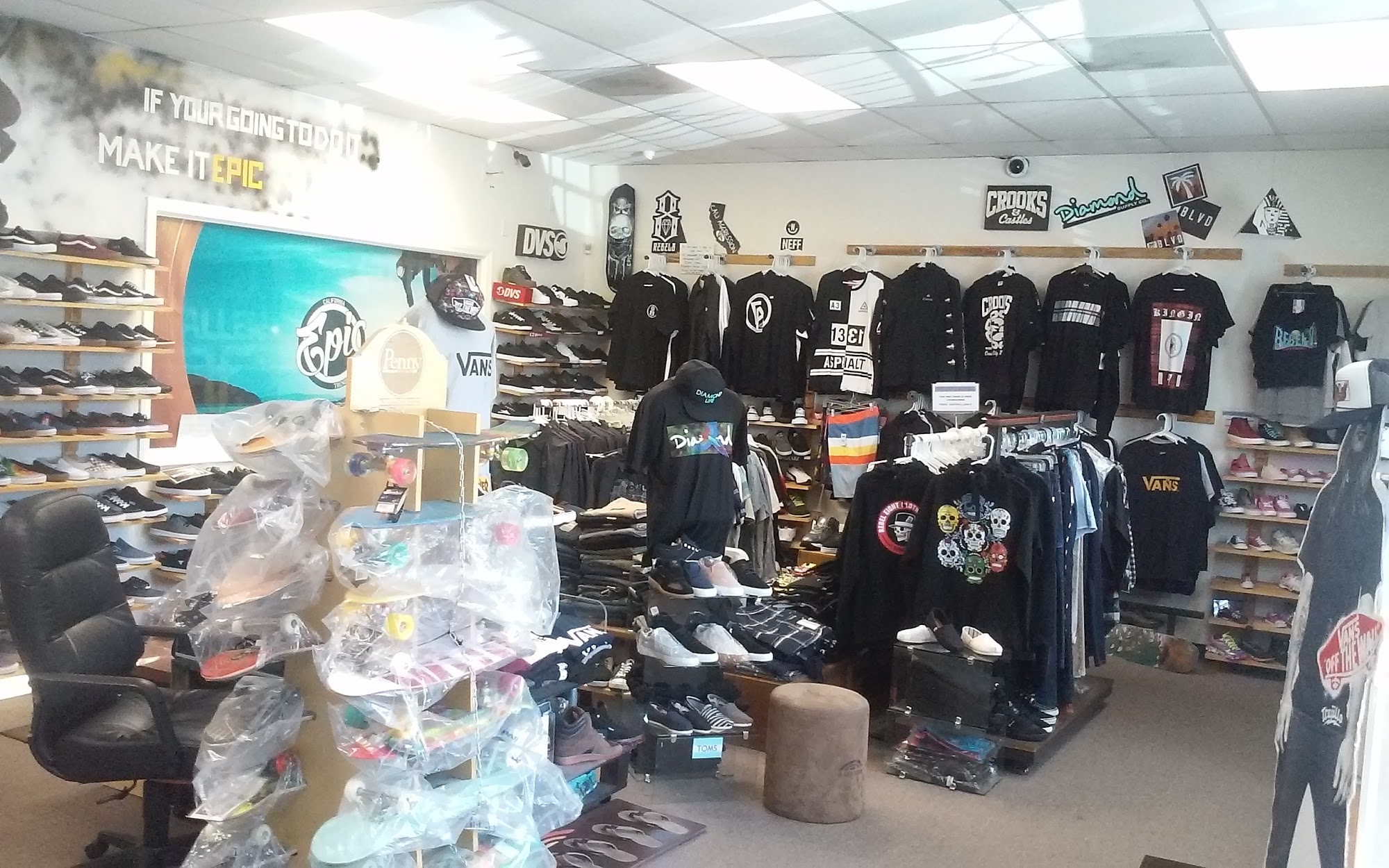 Epic Trends has been in business for over 10 years serving the Vista & Oceanside communities with their shoes, skate and apparel needs. We are authorized dealers for many of the Skate brands you have come to trust over the years in this industry. We are the only authorized Vans dealer in Vista. You can be assured you will get the best service and best selection at Epic! Please visit us soon!
