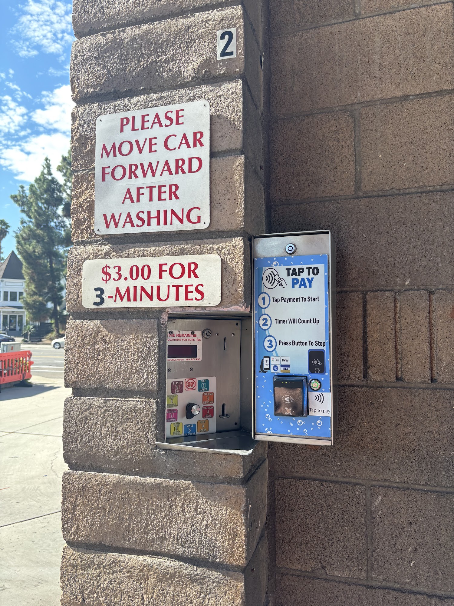 One card reader to pay did not work and the next stall over that I used the "foaming brush" failed. I would suggest a more frequent equipment testing and repair system.