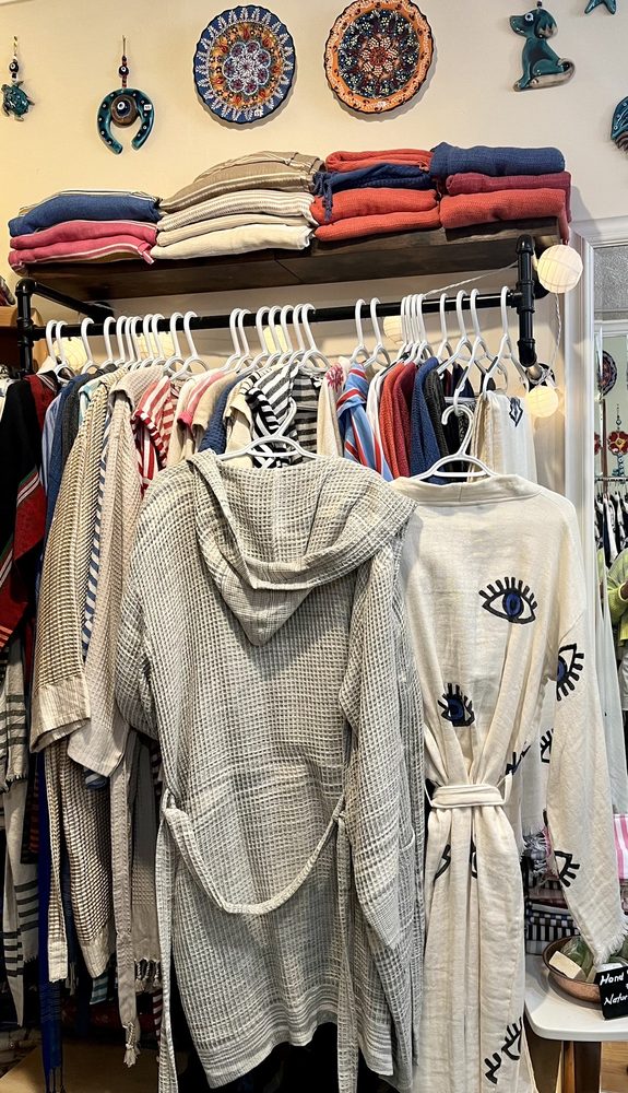 Wardrobe Boutique is a beautiful and captivating store in downtown Walnut Creek, offering a unique collection of goods from Turkey. The shop carries beautiful, high-quality, and unique clothing made from natural fabrics like linen, bamboo, and cotton, featuring flowy and elegant styles as well as form-fitting pieces, crocheted tops, robes, and beautiful fabrics. It also offers gorgeous and sultry Turkish lamps, jewelry, colorful scarves, intricately designed jewelry, one-of-a-kind souvenirs, and Turkish soap. The owner is hospitable, kind, friendly, welcoming, warm, gracious, sweet, and a genuine delight, providing a very fun and enjoyable shopping experience with extensive product knowledge. Visitors are warmly greeted and offered Turkish coffee, apple cider, or apple tea, adding to the authentic and welcoming atmosphere. The overall experience is highly recommended as a must-see hidden gem for a delightful and enjoyable visit.
