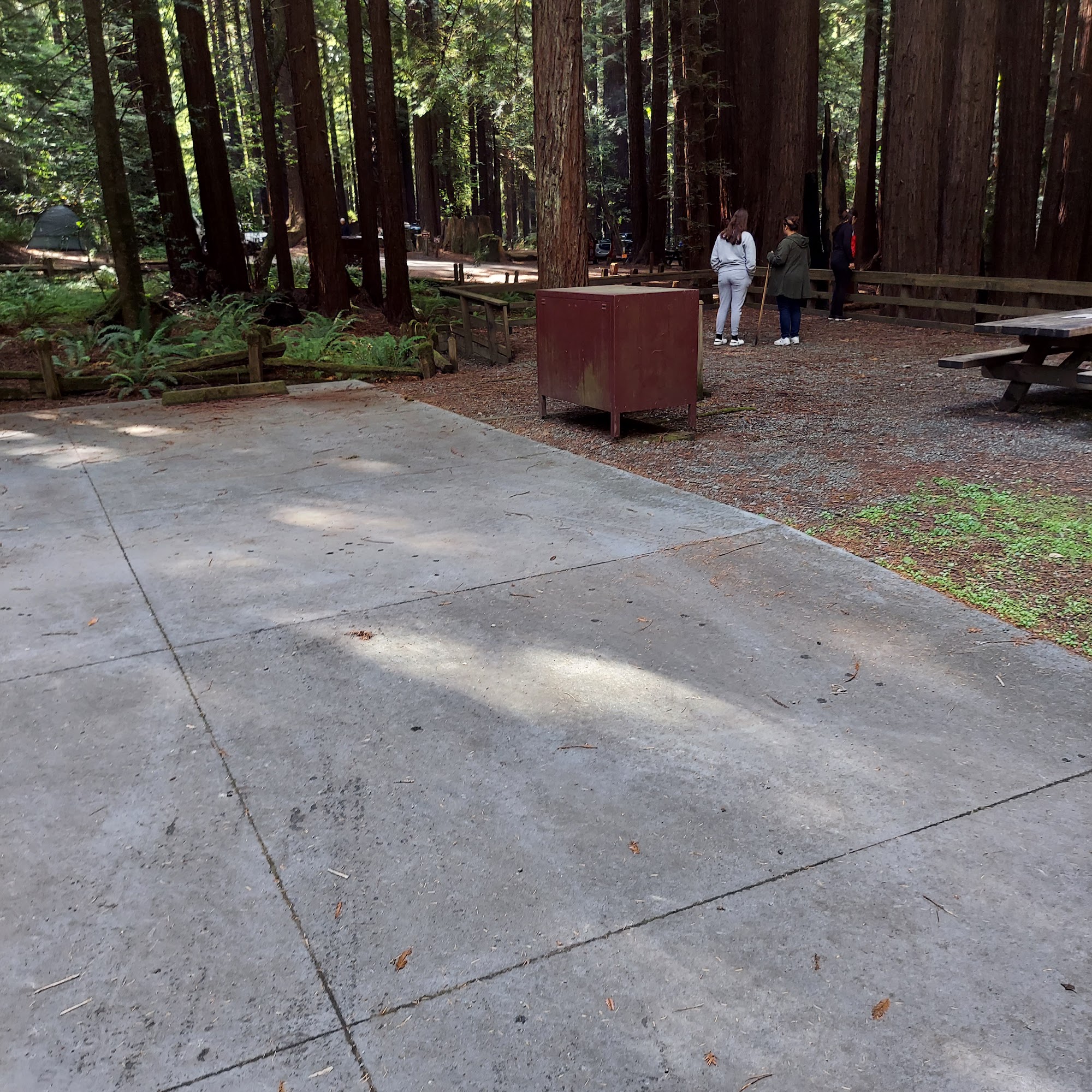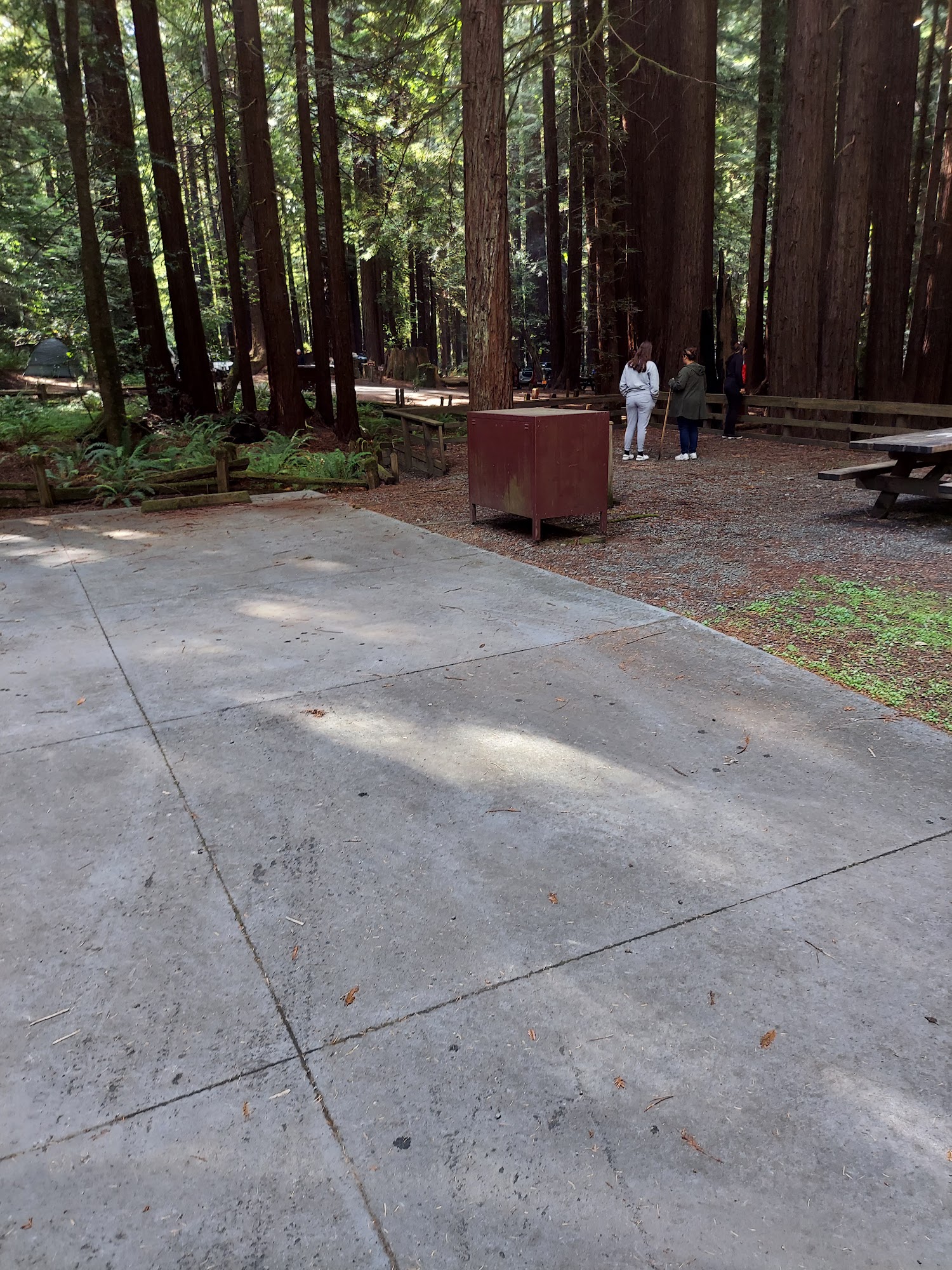 It's a nice campground under the redwood trees. There's rv trailer and tent sites no hook ups but has flush tolites and hot showers