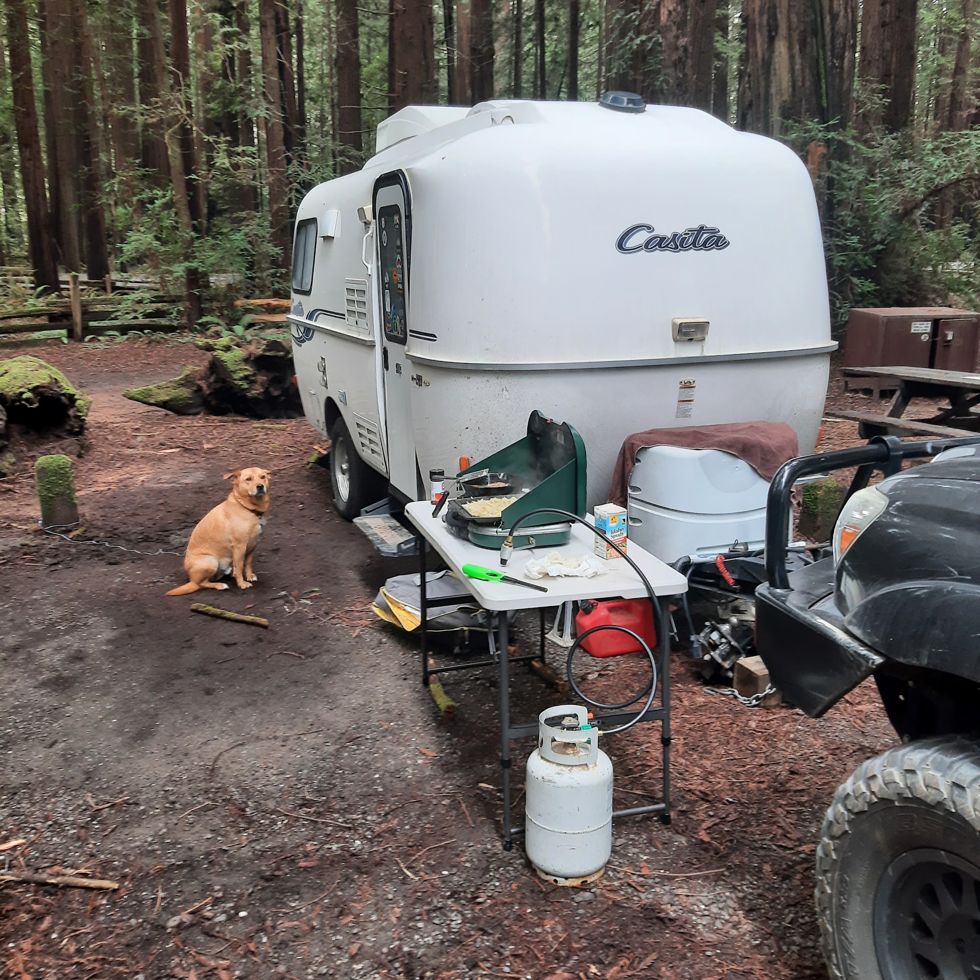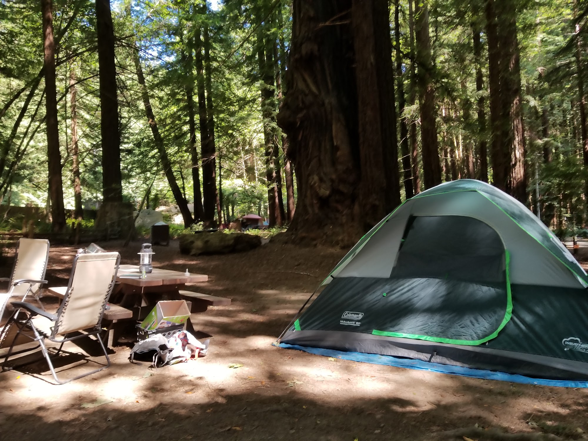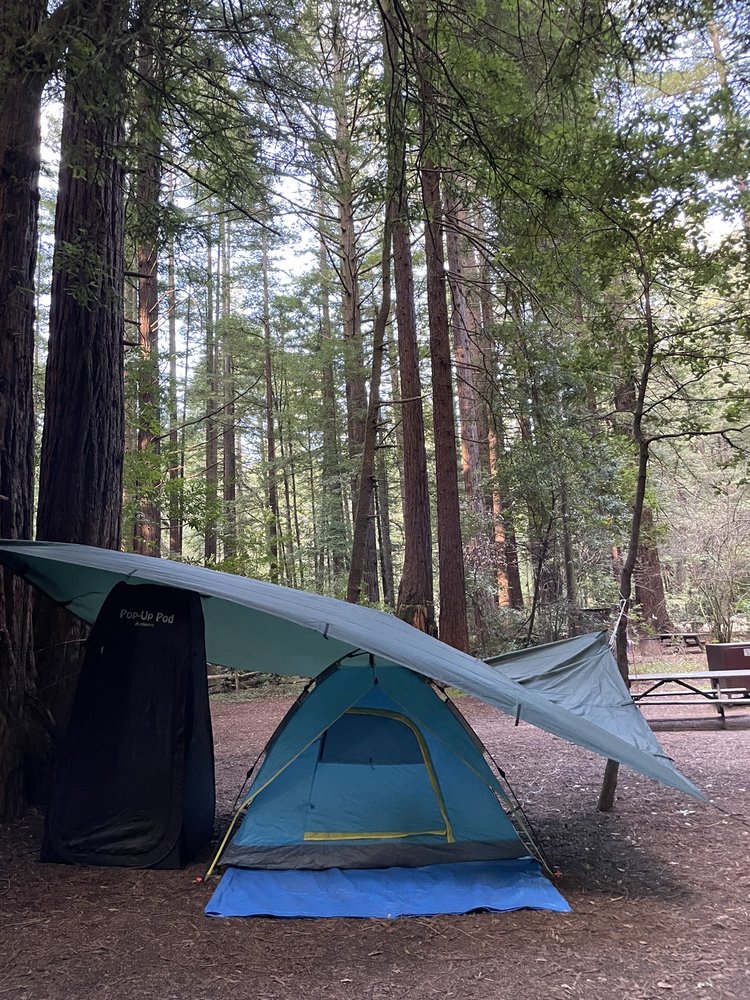 Burlington Campground is a charming spot nestled under redwood trees, offering RV trailer and tent sites, though there are no hookups. Campers can enjoy clean bathrooms, hot showers, and a well-maintained environment. The campground features a store at the entrance with a good selection of books and complimentary coffee. Reviewers appreciate the beauty of the natural surroundings, describing it as lush, green, and peaceful. The sites are spacious and suitable for large tents, with accessible dumpsters and easy check-in. While some visitors have experienced rainy weather, they still enjoyed their stay. Burlington Campground is a great choice for a weekend getaway, though it may be a bit far from the Bay Area. Many guests return annually, making it a beloved destination.