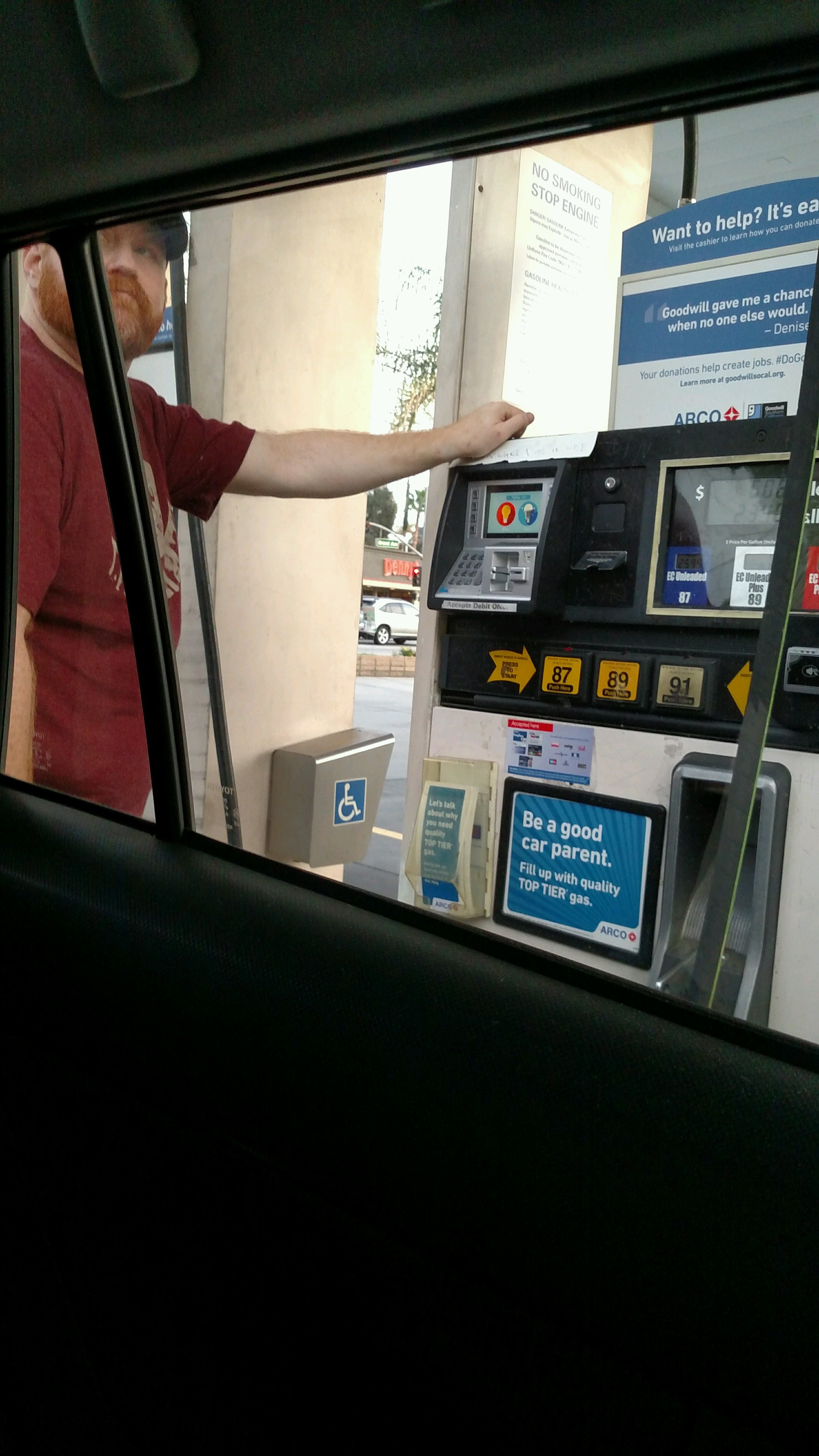 I Love coming to this Arco. Employees are FRIENDLY! They truly appreciate your business. I will drive out of my way to fill up the gas here.