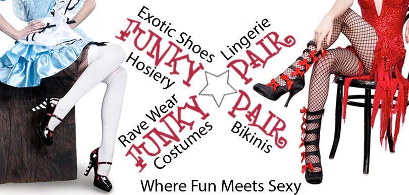 FUNkyPair carries a premium collection of Sexy Shoes, Lingerie, Adult Costumes, Rave Wear, Bikinis and accessories. Check out our collection brands such as Pleaser USA, Demonia Cult, Ellie Shoes, Fabulicious, Funtasma, J. Valentine, Leg Avenue, Roma Costume and So Much More. Shop Online Or Visit Our Shop Today!