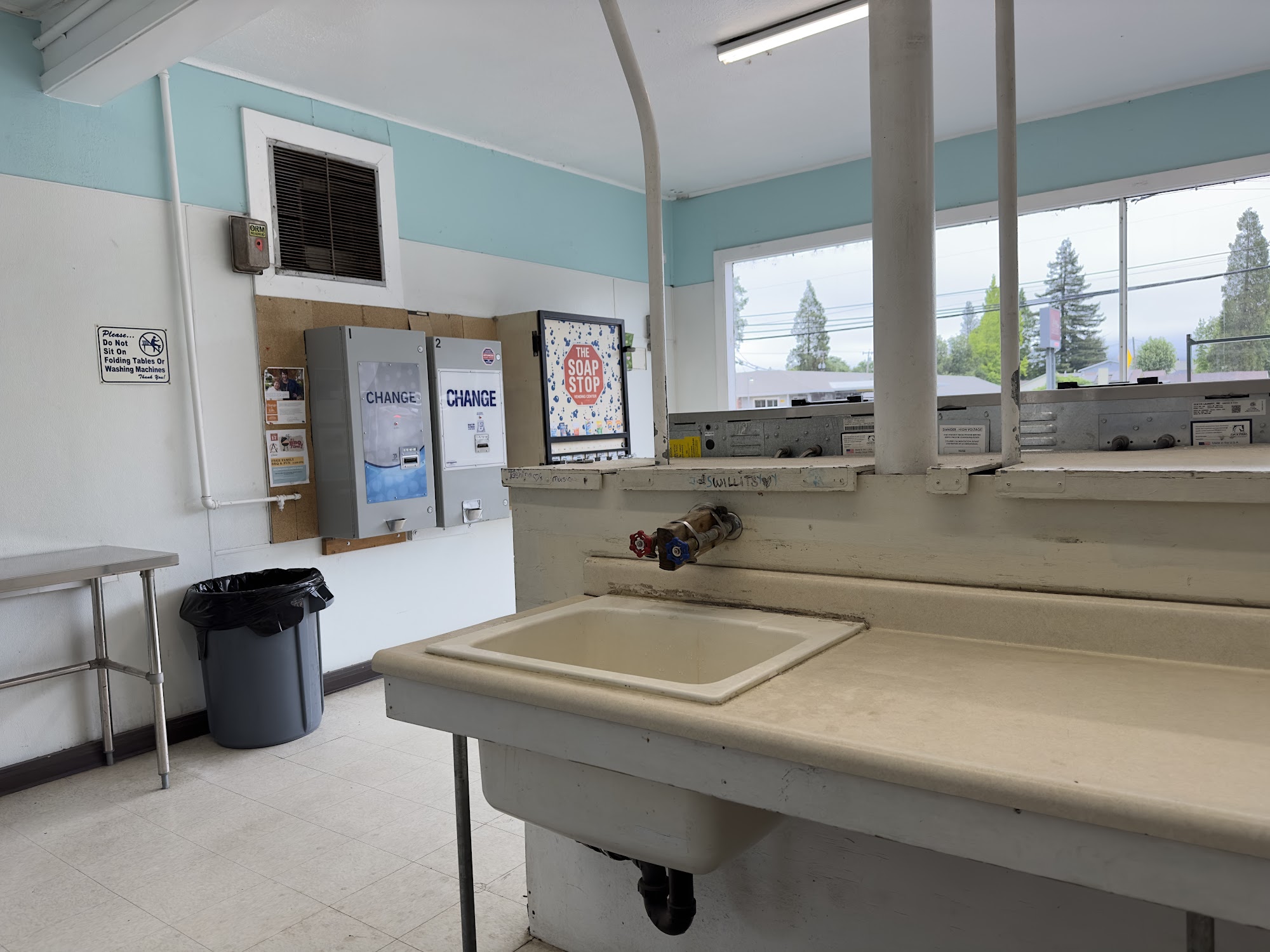 U-wash is a clean and well-taken-care-of laundromat and car wash. The machines work good and always work, with nice washers and dryers. It is cleaned everyday and is a clean, well-lit place. There are soap dispensers, a working change machine, and quarter machines. It offers plenty of seating, big tables to fold on, and a sink with hot and cold water. The car wash is affordable, with decent pressure on the hoses and cheap, working vacuums. It is an all-around great laundry with good music playing softly inside. The owner is very nice.
