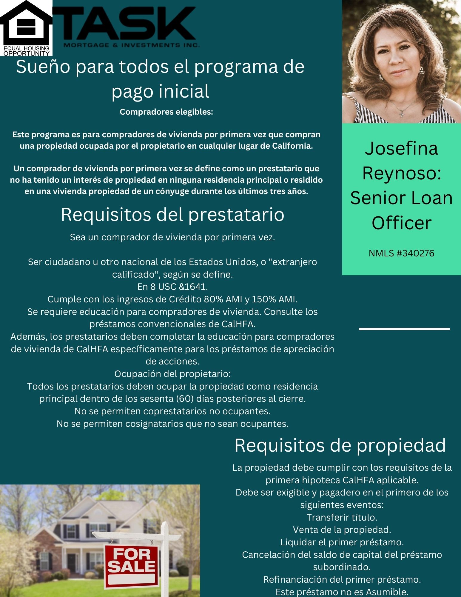 About Josefina Reynoso - Task Mortgage & Investments