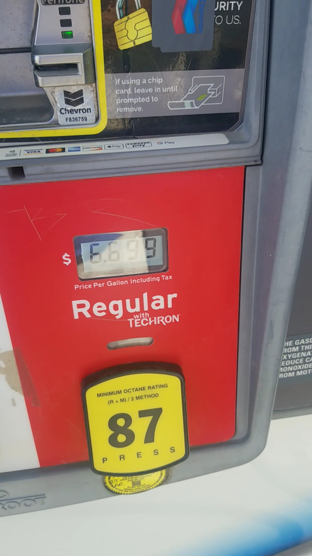 The service was awesome so 5 star there, the price 1 star for regular gas at 5.99 is expensive. If I could of made it farther I would have. 6 miles away it was 3.69. I was on fumes in a truck pulling a trailer so I had to get gas.