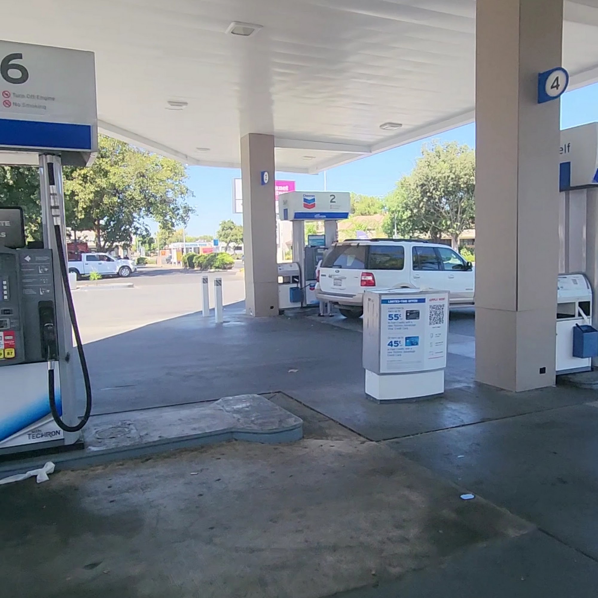 This chevron off of main and west street in woodland is my goto for gas. The food mart is always clean and well stocked, and the employees are always friendly. The gas pumps are covered and well lit.