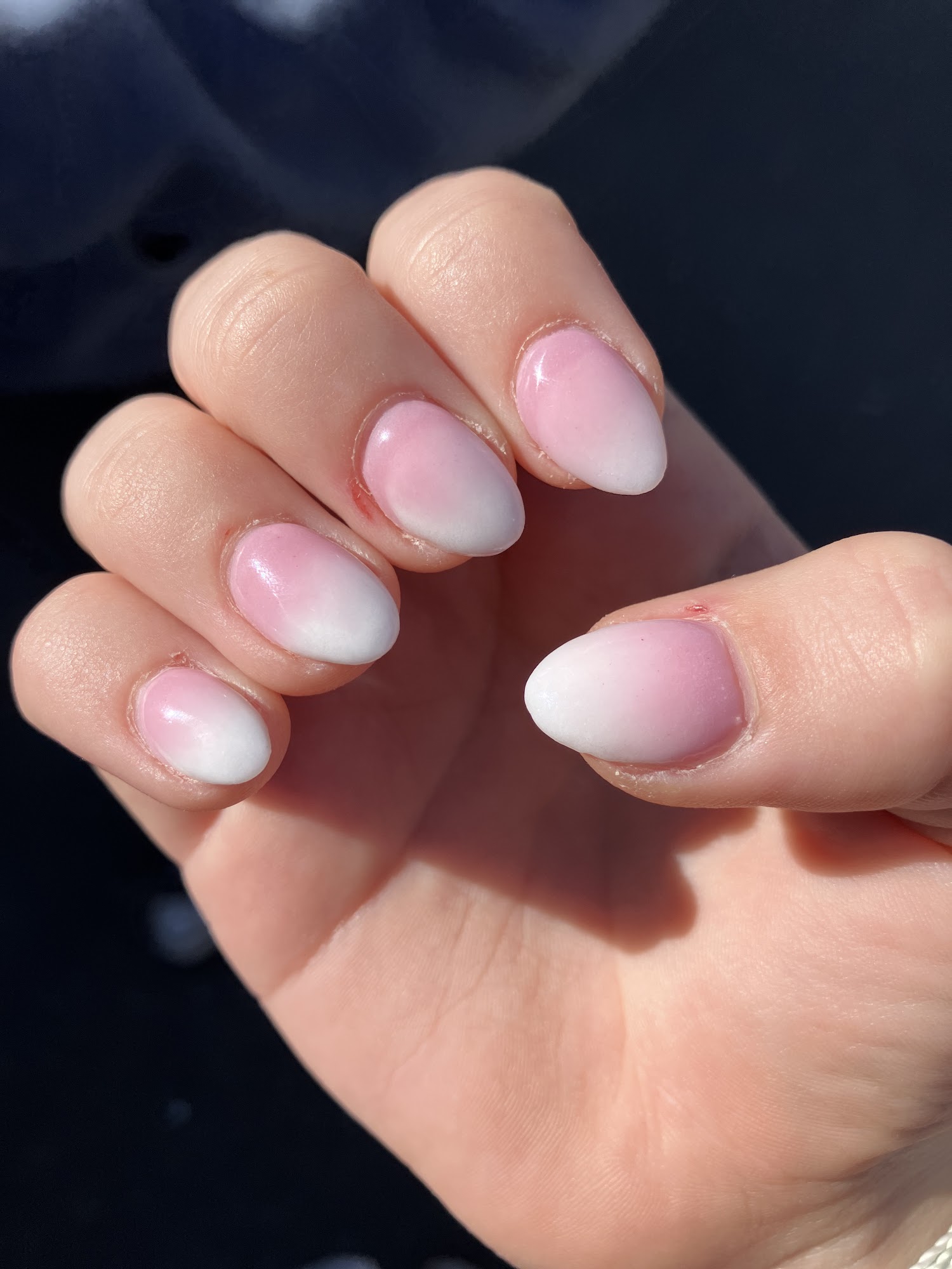 good customer service, cute nails, but cut me on middle finger and thumb