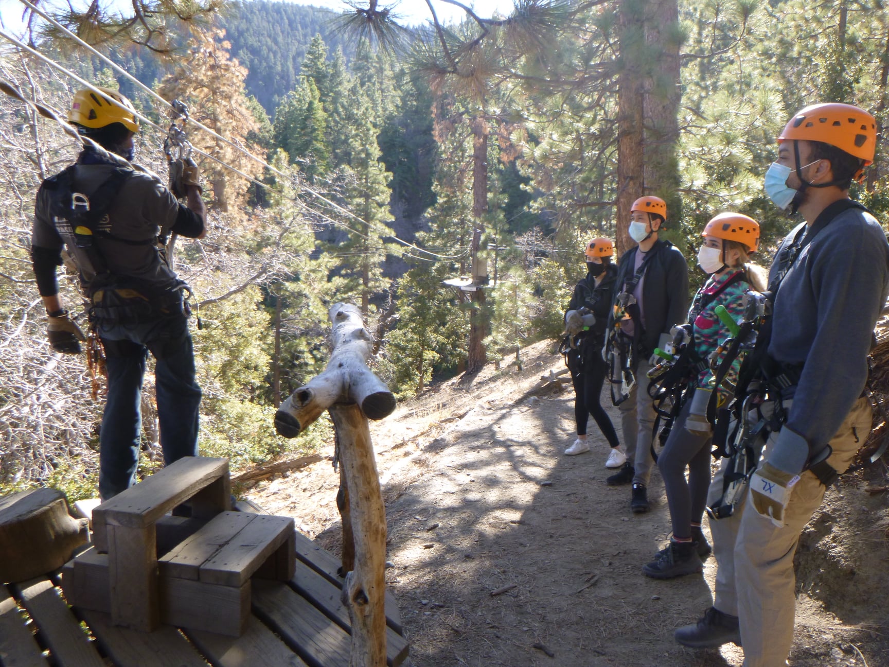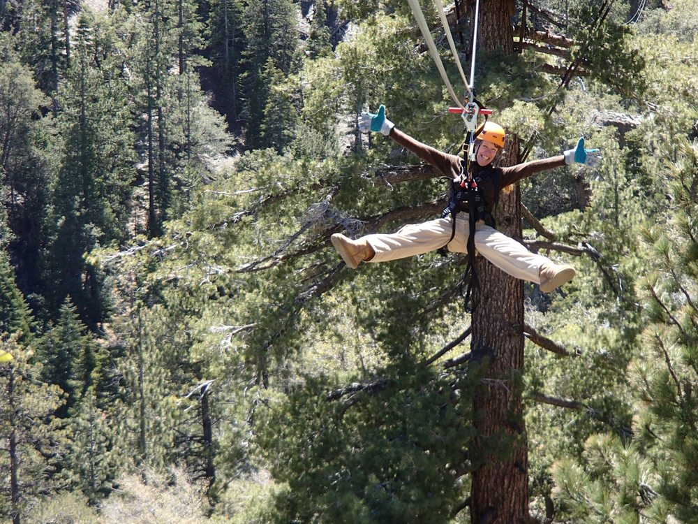 Ziplines at Pacific Crest offers two of the most exciting zipline courses in the country, located just 75 miles from Los Angeles, in the San Gabriel Mountains near Mountain High Resort. The adventure begins the moment visitors arrive, with a friendly and professional staff dedicated to safety and fun. Many guests have praised the guides for being engaging, funny, and educational, making everyone feel secure whether they are young or older. Notable guides have included Aiden, Tatiana, Shane, Trent, Karson, and Gage, who all create a relaxed and enjoyable atmosphere while sharing their knowledge of the surroundings. The scenery is described as fantastic, and the experience is often characterized as fun, exhilarating, and even life-changing. Visitors appreciate the accommodating staff who are patient and calm, especially when working with younger or first-time zipliners. The guides also incorporate unique experiences such as tasting and smelling trees, adding to the memorable adventure. Safety is a top priority for the team, with many guests feeling confident and trusting the staff from start to finish. Overall, Ziplines at Pacific Crest promises a thrilling, safe, and unforgettable outdoor adventure for everyone looking to soar above the trees and enjoy the beautiful mountain scenery.