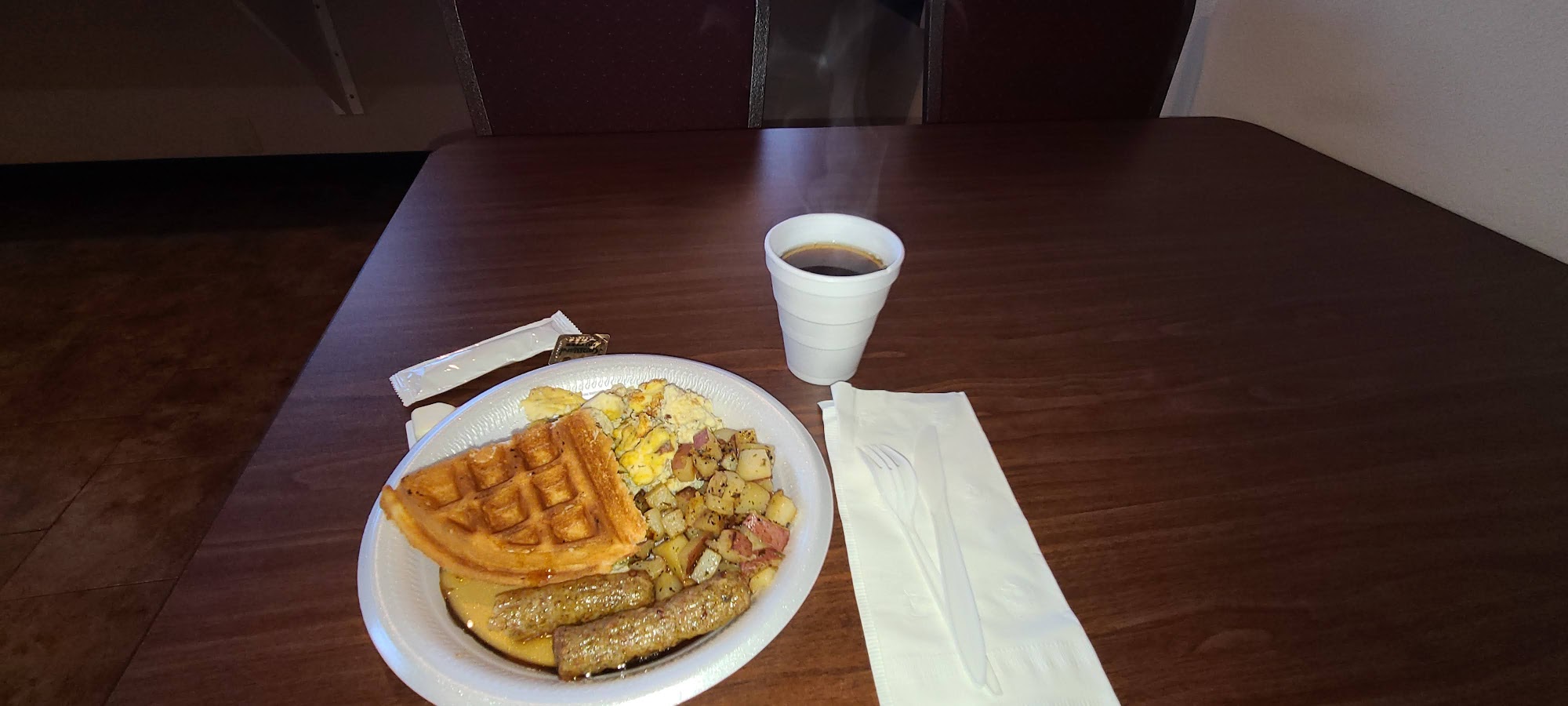 The Sunset Inn is a simple, clean, and affordable spot to stay with an old-school, Route 66 roadside motel feel. The staff are consistently described as kind-hearted, friendly, helpful, and utterly fantastic. Rooms are very clean, spacious, and comfortable with comfy beds and pillows. Guests enjoy a free breakfast with waffles, cereal, bagels, muffins, coffee, and juice. The hotel is pet-friendly and close to food. While some note occasional hallway noise or a room smell, the overall experience is excellent and highly recommended, making it a fabulous gem and a really pleasant hotel.