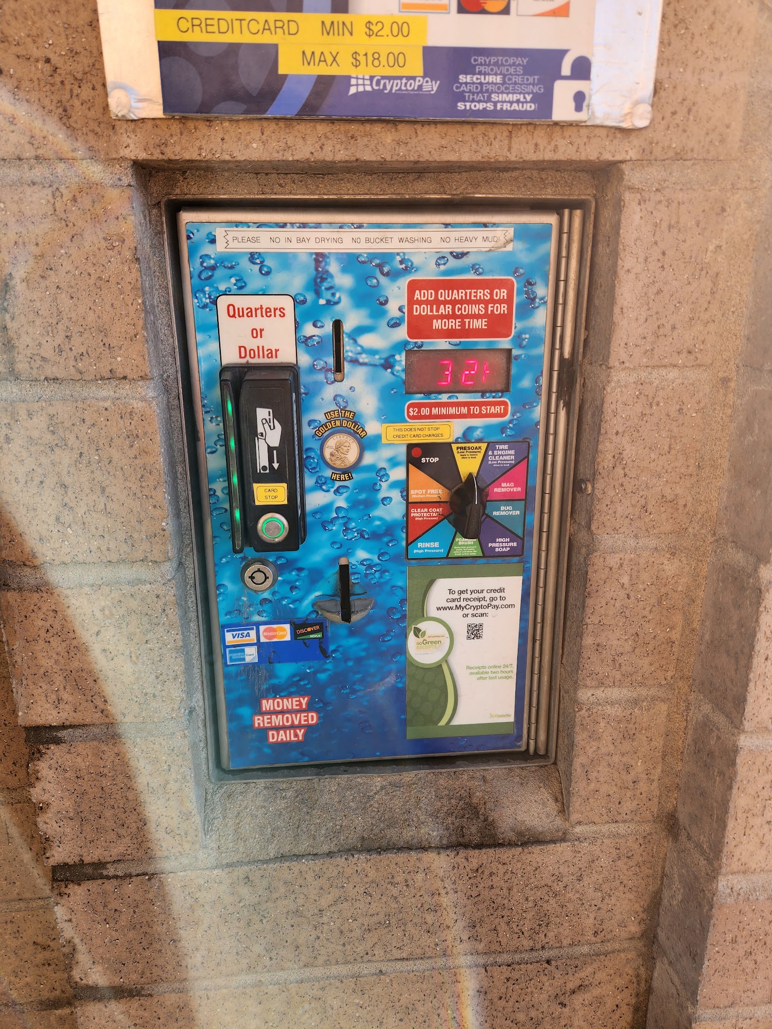 Just went here for the first time. I was able to clean my car for $2.50. There is a $2.00 minimum to start the machine but once it starts you can just put money in before the timer is done. The facility was clean and well maintained. I thoroughly enjoyed this place :)