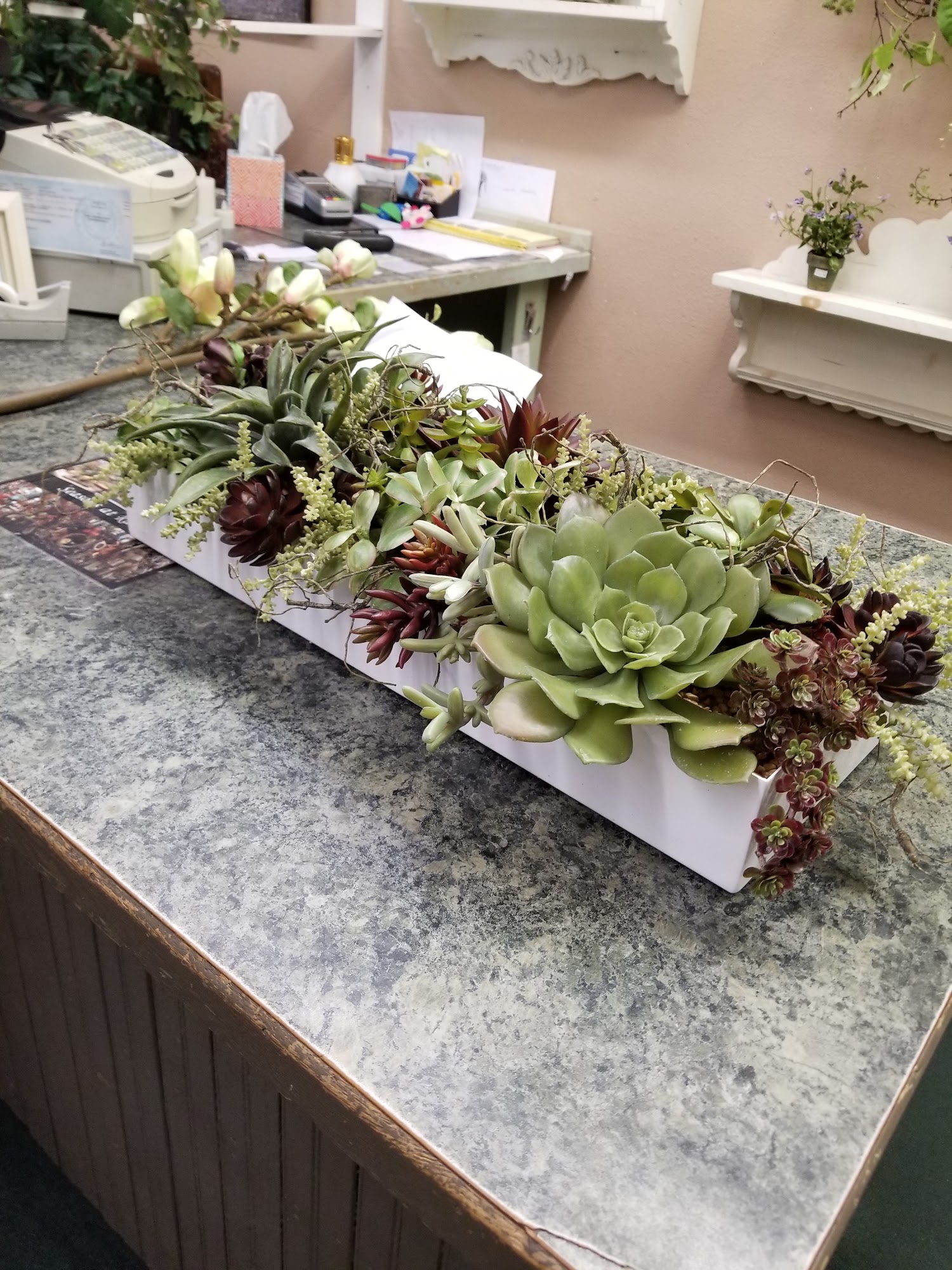 The florist here was so kind and ready to help a stressed out mother with a prom emergency she designed a beautiful corsage and boutonniere with no hesitation at a wonderful price! I am forever grateful. Very realistic flowers and friendly staff, definitely recommend.