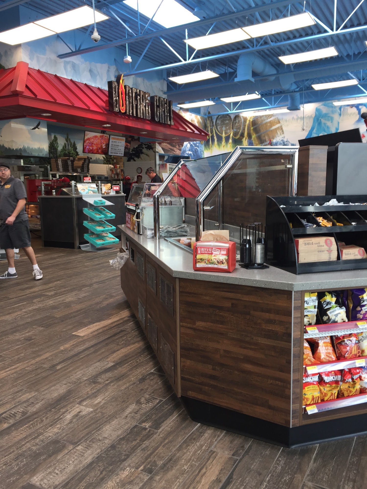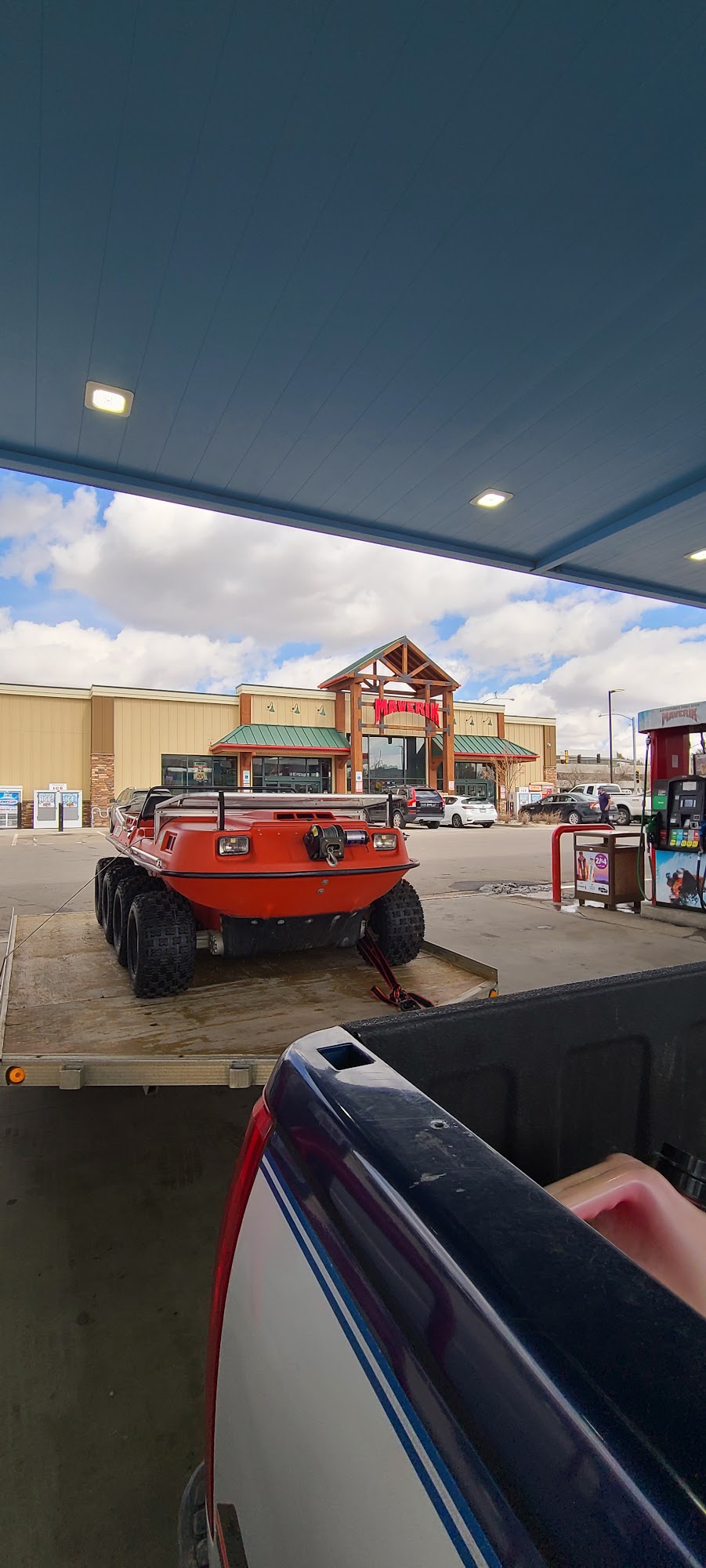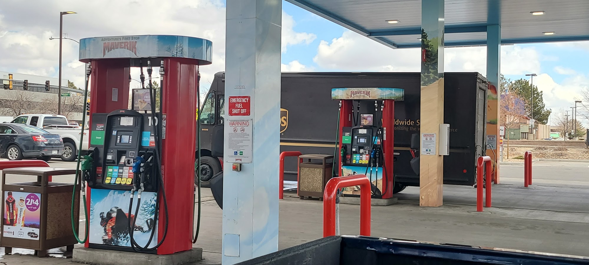 Maverik Adventure's First Stop is a place to go for fuel, drinks, food, and goodies. The store is clean and decent, with everything as maintained as it can be for a location right off the highway. The restroom is clean and presentable, and the outside area is decent, though the air pump machine requires a fee and can be problematic. Staff members are often nice, friendly, and professional, with some employees making customers feel welcome, safe, and impressed. However, the staff can sometimes be unprofessional with loud music and playing. At night, there can be questionable people gathered outside the doorway, making it uncomfortable to go inside. Despite this, the location is very convenient, and many customers like stopping there, recommending it to others.