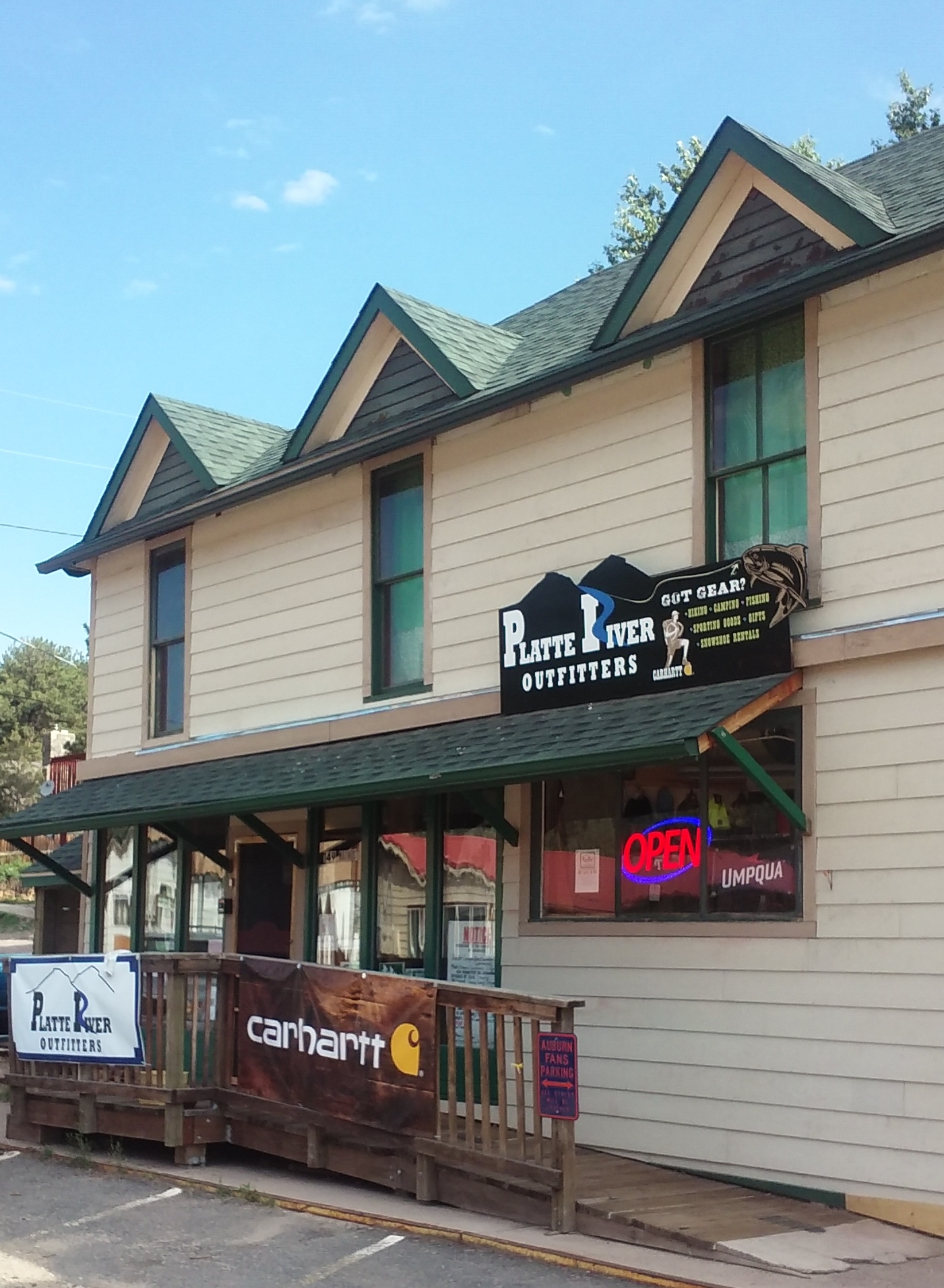 Platte River Outfitters is a very nice outfitter in Bailey, Colorado, offering a wonderfully inviting experience. The owners are incredible, providing fantastic and excellent hospitality and customer service. They are very knowledgeable, super helpful, and go above and beyond. The store has a very broad selection, including a ton of supplies, Carhartt work wear, unique items, fly fishing lessons and gear, and snow shoe rentals. They are definitely recommended for anyone in the Pine area, offering an 11/10 experience worth stopping at in the small town.