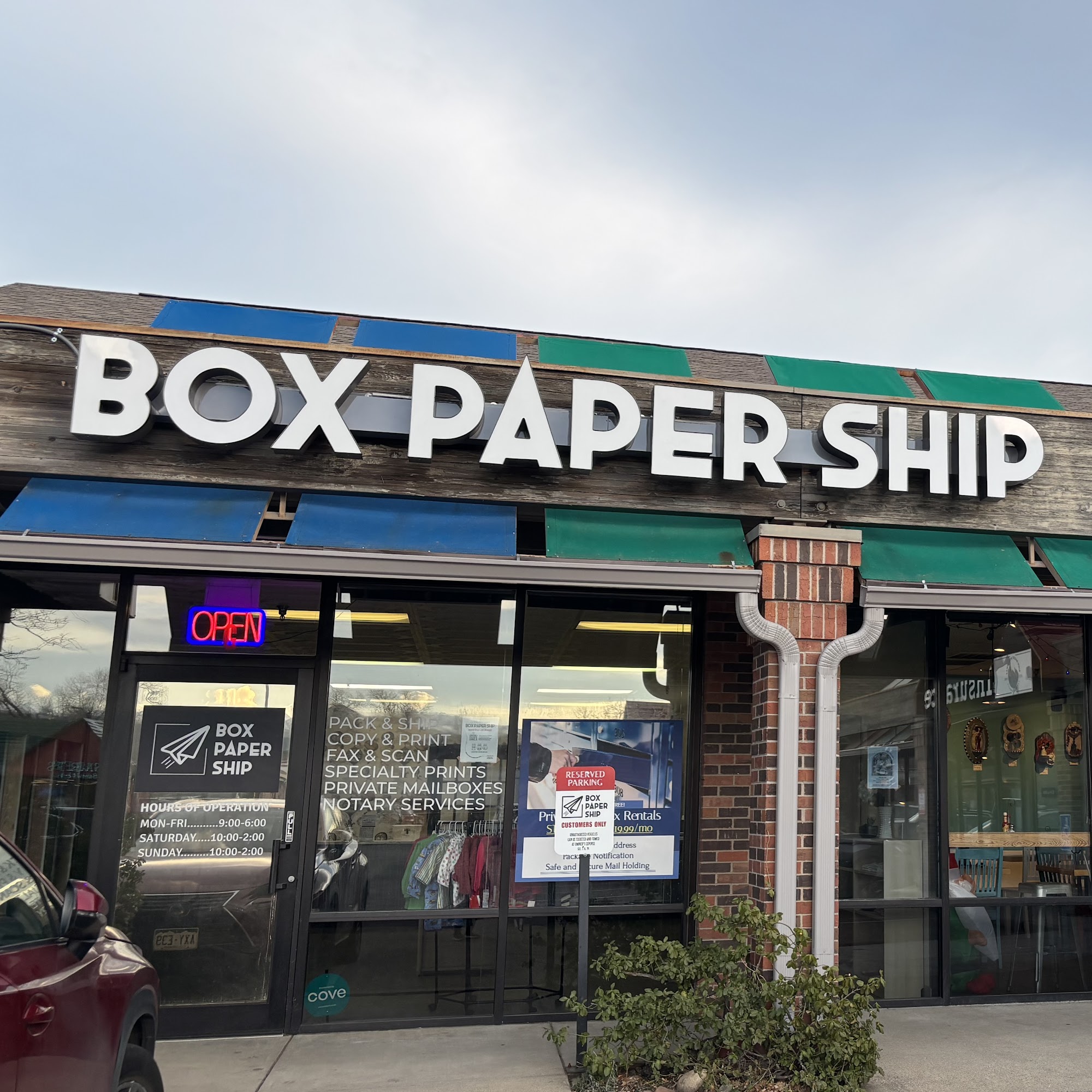 As a small business owner with shipping needs, I love Box Paper Ship! I never have to wait line and can ship USPS ground. Also, they have local products and art if you need a last minute gift!