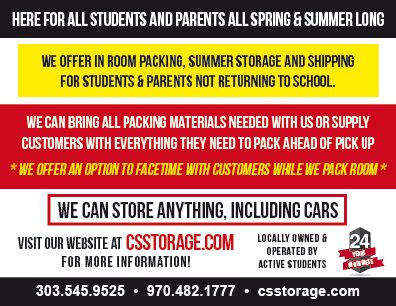 Looking to save time and money this year? Relax, we've got it! College Student Storage offers door-to-door moving, storage and shipping solutions for all of your belongings. Whether you are storing your gear for the summer or an entire semester, we’ve got you covered. CSS is locally owned and operated and has been helping college students across Colorado move and store their belongings for over 20 years!