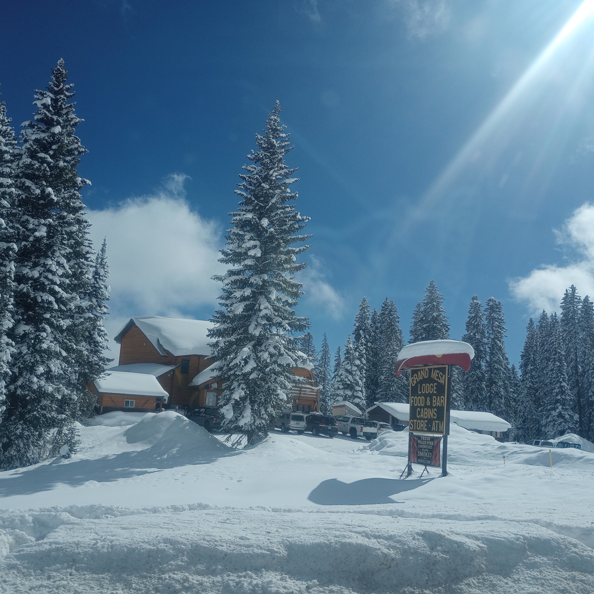 Grand Mesa Lodge offers a cozy and welcoming experience in Cedar Ridge, Colorado. Guests can choose from a variety of accommodations, including cabins that are private, well-equipped, and nestled in peaceful locations with easy access to scenic trails and a beautiful lake. The cabins provide everything needed for a relaxing stay, though some guests noted minor issues like a sauna that didn’t heat properly or missing a spatula. During winter, the lodge’s well-maintained cross-country ski trails make it an ideal destination for snow sports, with many visitors planning to return annually. The lodge also features a warm and inviting main building with a comfortable fireplace, spacious dining area, and great views of the surrounding mountains. The restaurant serves delicious food, including smoked brisket, pulled pork, and hearty sandwiches, with generous portions that often result in leftovers. Guests enjoyed fun experiences like making s’mores by an open flame and appreciated the friendly, helpful staff. Special holiday events, such as Thanksgiving dinners, add to the welcoming atmosphere, making visitors feel at home. The lodge’s location is convenient, with ample parking and nearby trails, perfect for outdoor lovers, hunters, and campers. Overall, Grand Mesa Lodge is praised for its beautiful setting, comfortable accommodations, good food, and friendly service, making it a highly recommended spot for both winter getaways and peaceful retreats.