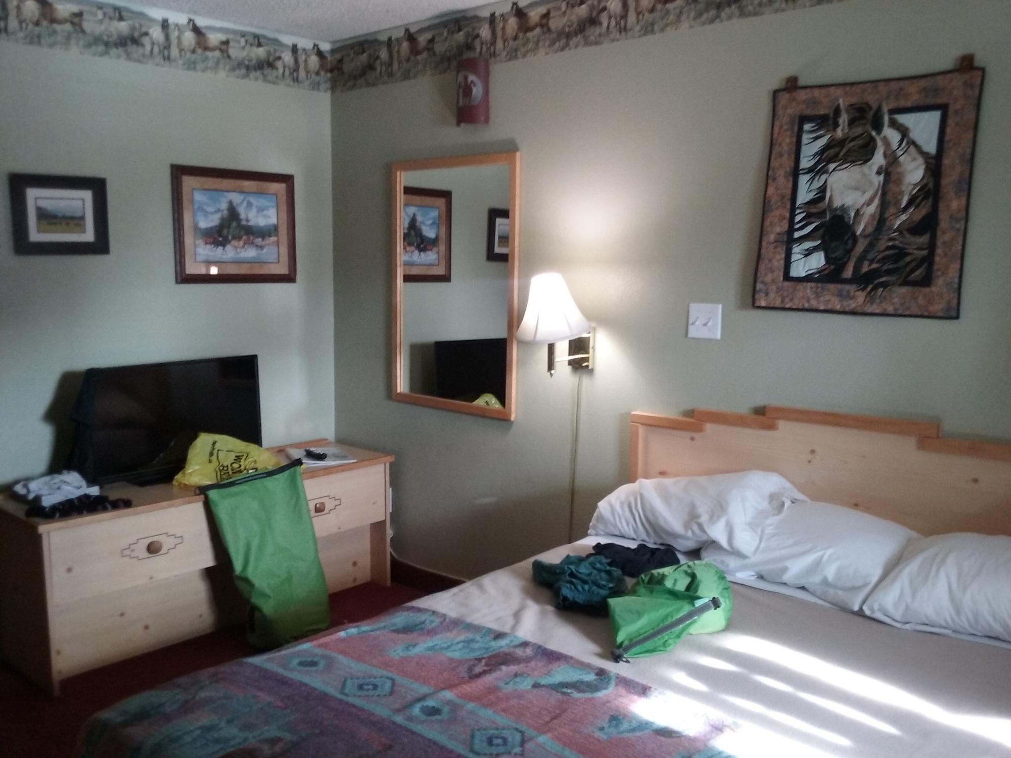 Had a new bed. An older motel well taken care of by the owner & managers. Each room & suite has a theme. Mine was wild horses. Room was warm & comfortable. Had a dvd player in it. I'll stay there again.