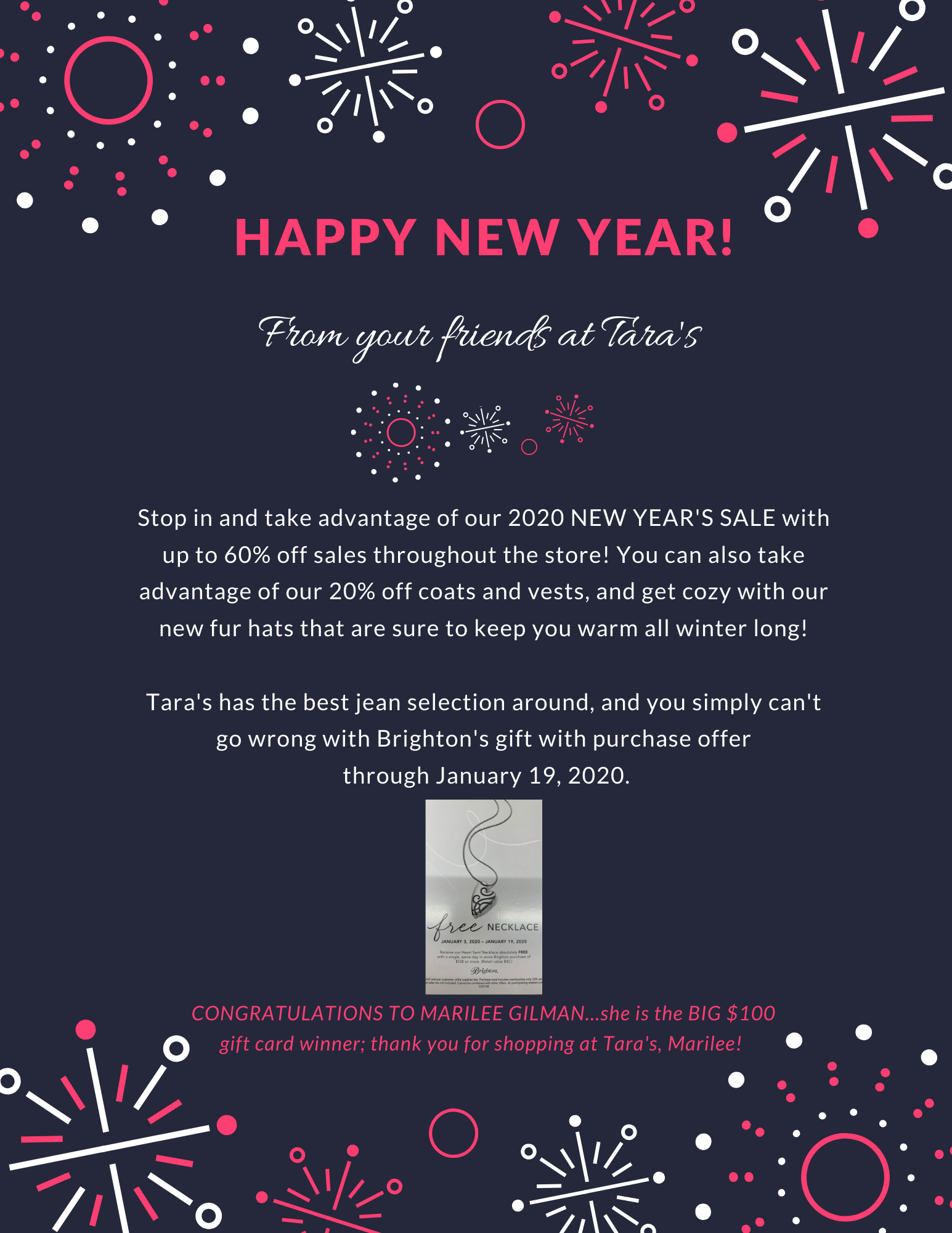 Love Tara's. I lived in Delta for a year. Met Tara and within 6 months i had a fully stocked closet and was a runway model for her! Seriously, I still have several pieces in my closet from 2006/2007.If I could shop anywhere, I would choose Tara's. ❤️