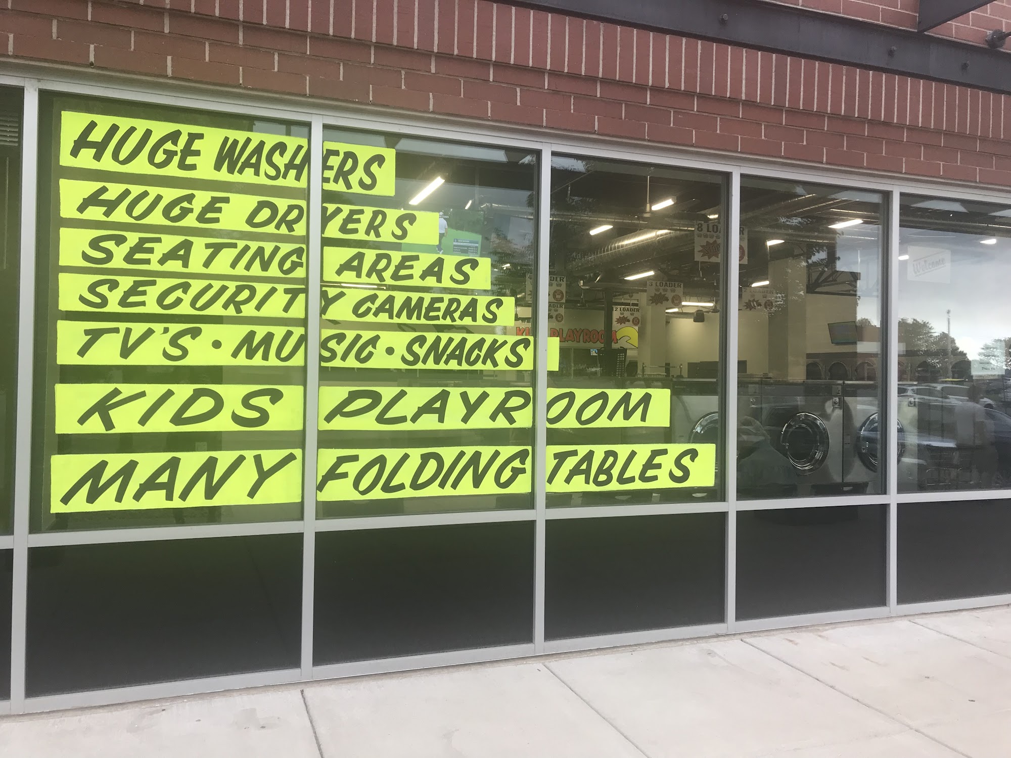 -Located in the Central Park shopping center. -Next to Big Lots & Arc Thrift -Self Service Laundromat (no drop off service at this time) -6 am – 10 pm -Last load @ 8:30 -Doors auto-lock at 8:30 ( no re-entry) -100+ parking spaces -Big Laundry 4,200 Square feet, so you won’t be cramped -2 bill change machines -Free WIFI -Air condition -Kid’s playroom / early learn center ( library of free books kids can take home, TV, Firetruck, kids sized table & chairs) -Many folding tables -7 Flat-screen TV’s -Music -10+ Security cameras (indoor & outdoor) for your safety -Seating area with USB & outlets for charging -Refrigerated drink vending -Non-refrigerated snack vending -Soap Vending -12 carts -Helpful Attendants’ that keep the laundry nice & clean