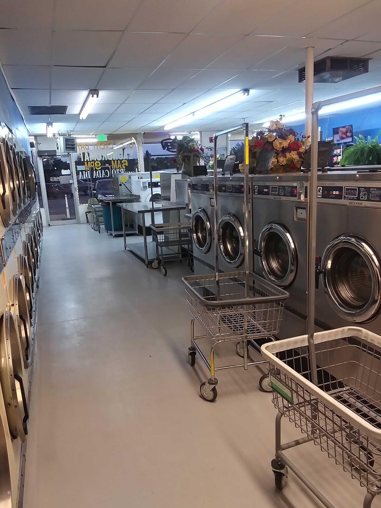 Clean space, lots of folding tables, single and double washers and dryers. $4 to wash single load, .25c per 7 minutes in the dryer. About an hour to finish one load. Middle of the day Saturday and it's not overly busy. I like it. Very nice.