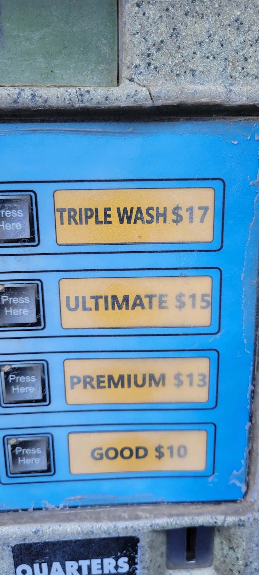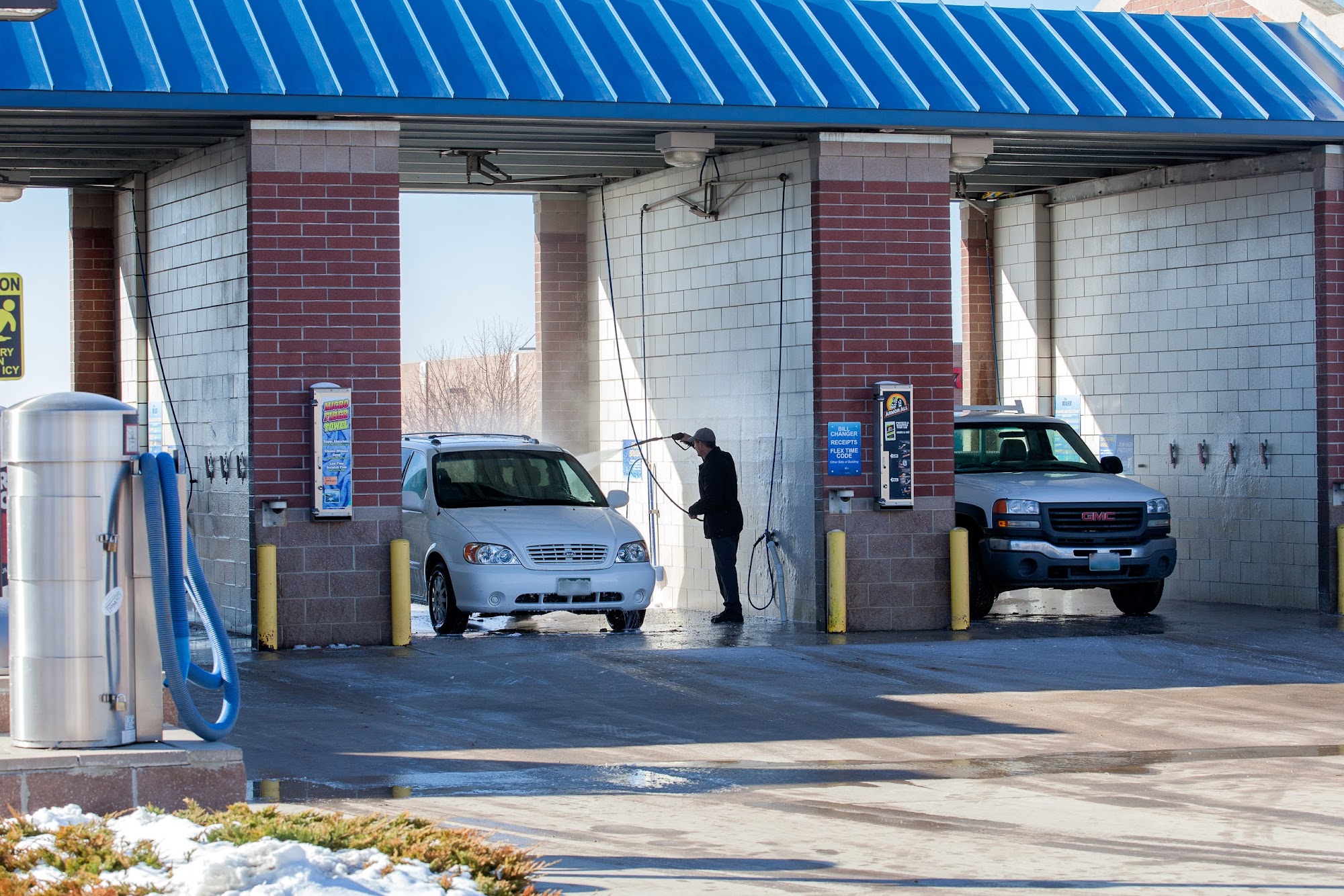 The auto carwash blows, half the time the sprayers don't work. You're better off going and washing it yourself.