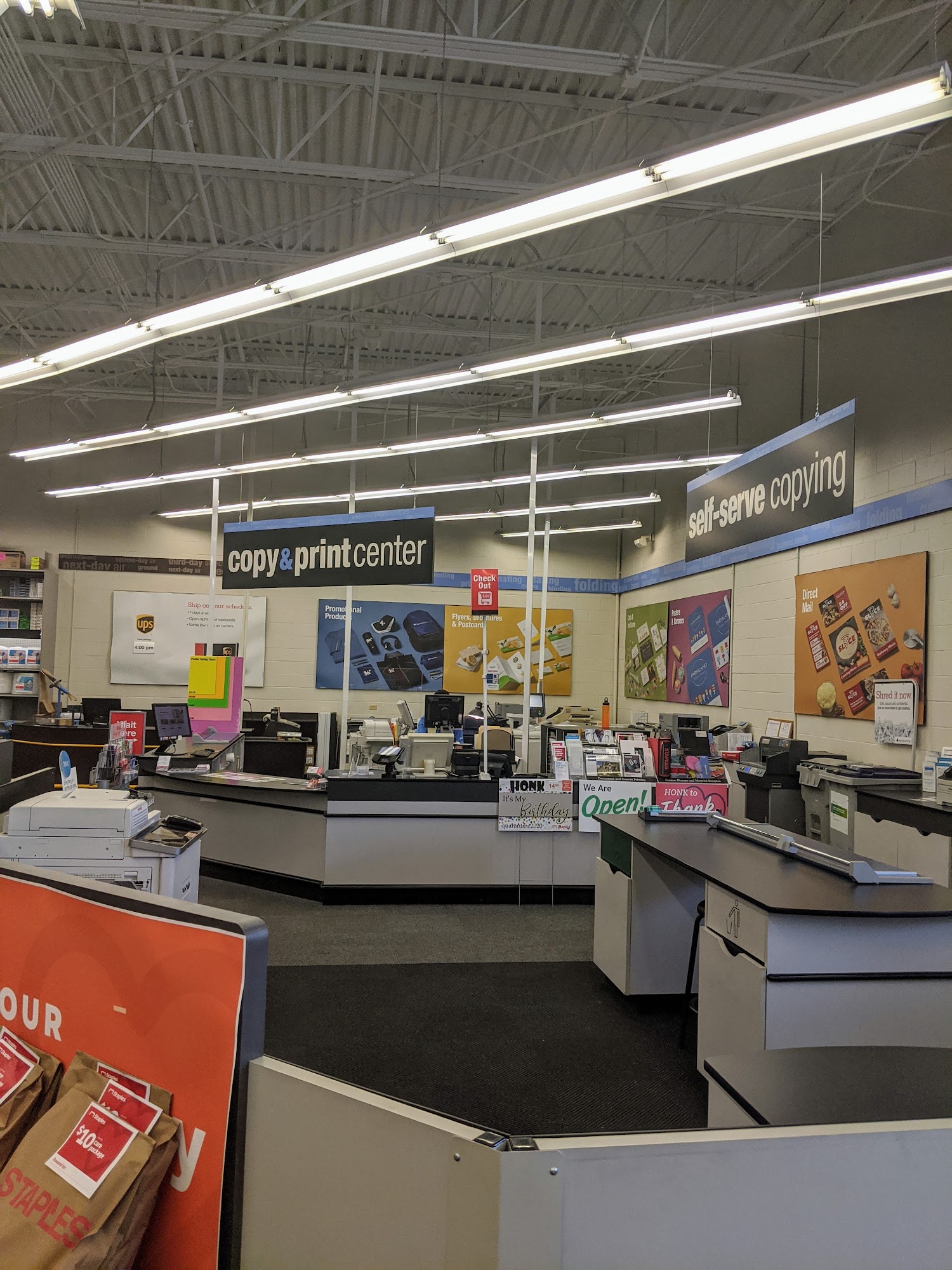 We go to our local Staples for all office needs, shipping and returning packages to Amazon. It is so convenient and there is always someone available to help if needed.