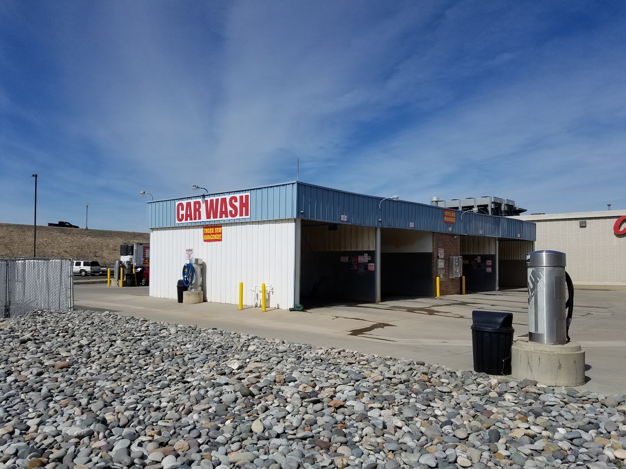 No lighting in the bays at night, did not feel safe. Ended up going to the other car wash in town down the road.