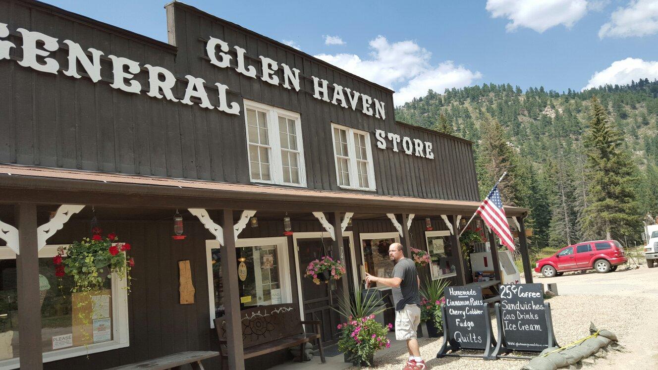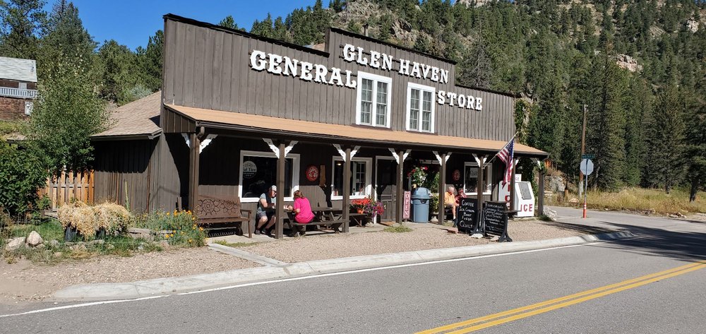 Glen Haven General Store is a great place for breakfast, lunch, sweet treats, souvenirs, gifts, and necessities. It is an excellent stop on the way to Estes Park, featuring incredible, amazing, and delicious homemade cinnamon rolls that many call the real deal and world class. The atmosphere is wonderful, with a welcoming, helpful, and friendly staff. Many consider it a must-stop and a great little gem, worth the drive for its freshly baked goods. People often buy extra and even call ahead to order their batch.