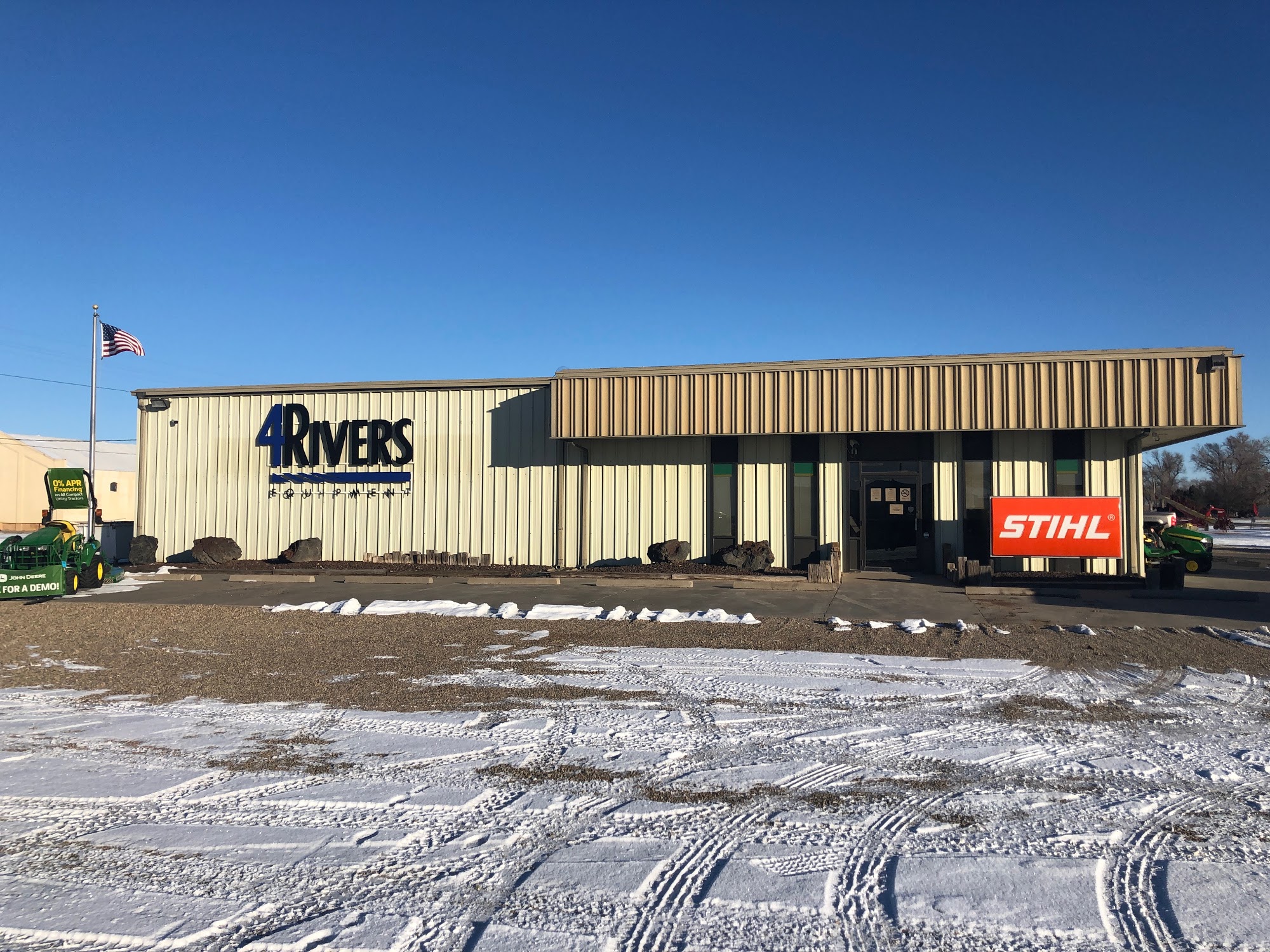4Rivers Equipment is proud to be your local John Deere Dealer in Holly, CO. We serve the area with home and ranch equipment solutions. Our team is dedicated to John Deere quality, providing you with the right parts and services to keep you running. We are also proud to provide Stihl gas-powered and Greenworks electric-powered handheld tools.