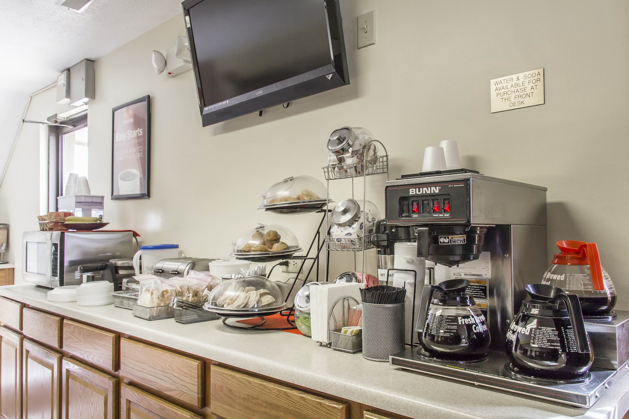 Easy to check in. My room was the cleanest I've ever seen a motel room!The bed was really comfortable, too. Mini fridge and microwave, too. Those are almost becoming obsolete in motels now.